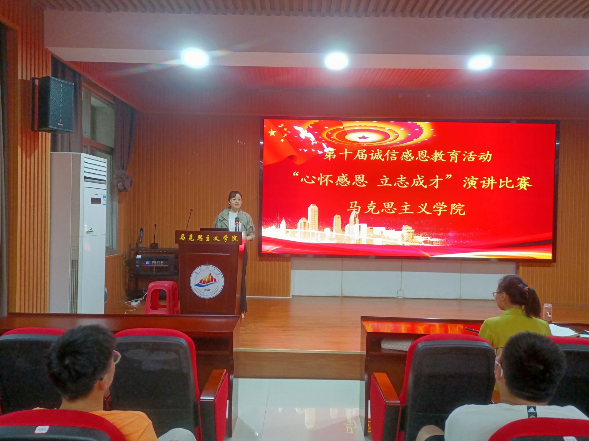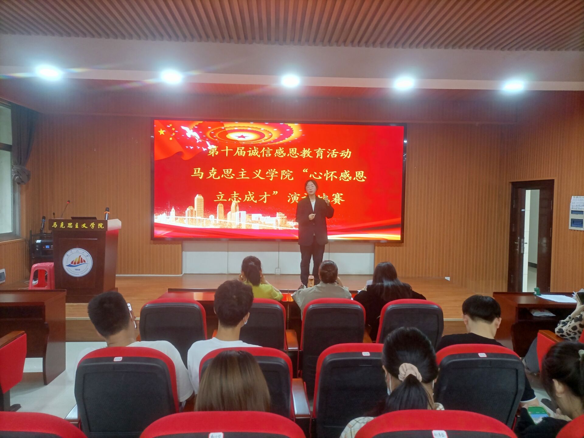 感恩是一种纯粹美好的力量,推动着青年砥砺成才。为落实立德树人根本任务,增强学生社会责任感,使学生常怀感恩心,马克思主义学院于5月19日在1栋103举办了“心怀感恩,立志成才”演讲比赛。学院党委副书记吴丽花、学生科科长曾楚乔和团委书记饶华萍应邀担任评委。