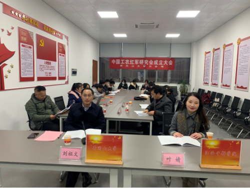 2021年12月26日,由我校与江西干部学院牵头,整合江西省内研究红色文化资源队伍的基础上成立的“江西省中国工农红军研究会”成立大会隆重举行。成立大会由北京主会场、深圳分会场和井冈山大学分会场三个会场线上举行。红军后代孔继宁、刘武、何光晔等22人在北京主会场和深圳分会场参加会议,井冈山大学党委副书记、校长曾建平通过连线方式对研究会成立表示祝贺,党委副书记刘祖文在井冈山大分会场出席并致辞,学院和等江西干部学院会员代表等20余人在井冈山大学分会场参加大会。