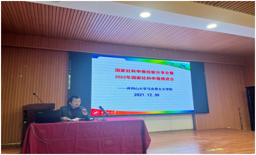 为推动马克思主义学院国家社科申报工作, 2021年12月30日,在学院1-103报告厅举办了国家社科申报经验分享会暨2022年国家社科申报推进会。