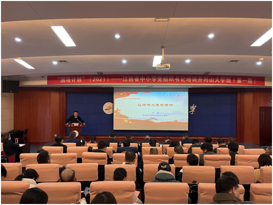 2021年12月19日下午14:30,井冈山大学马克思主义学院院长孙斌教授为“国培计划(2021)”——江西省中小学党组织书记培训班做专题讲座:弘扬伟大建党精神。