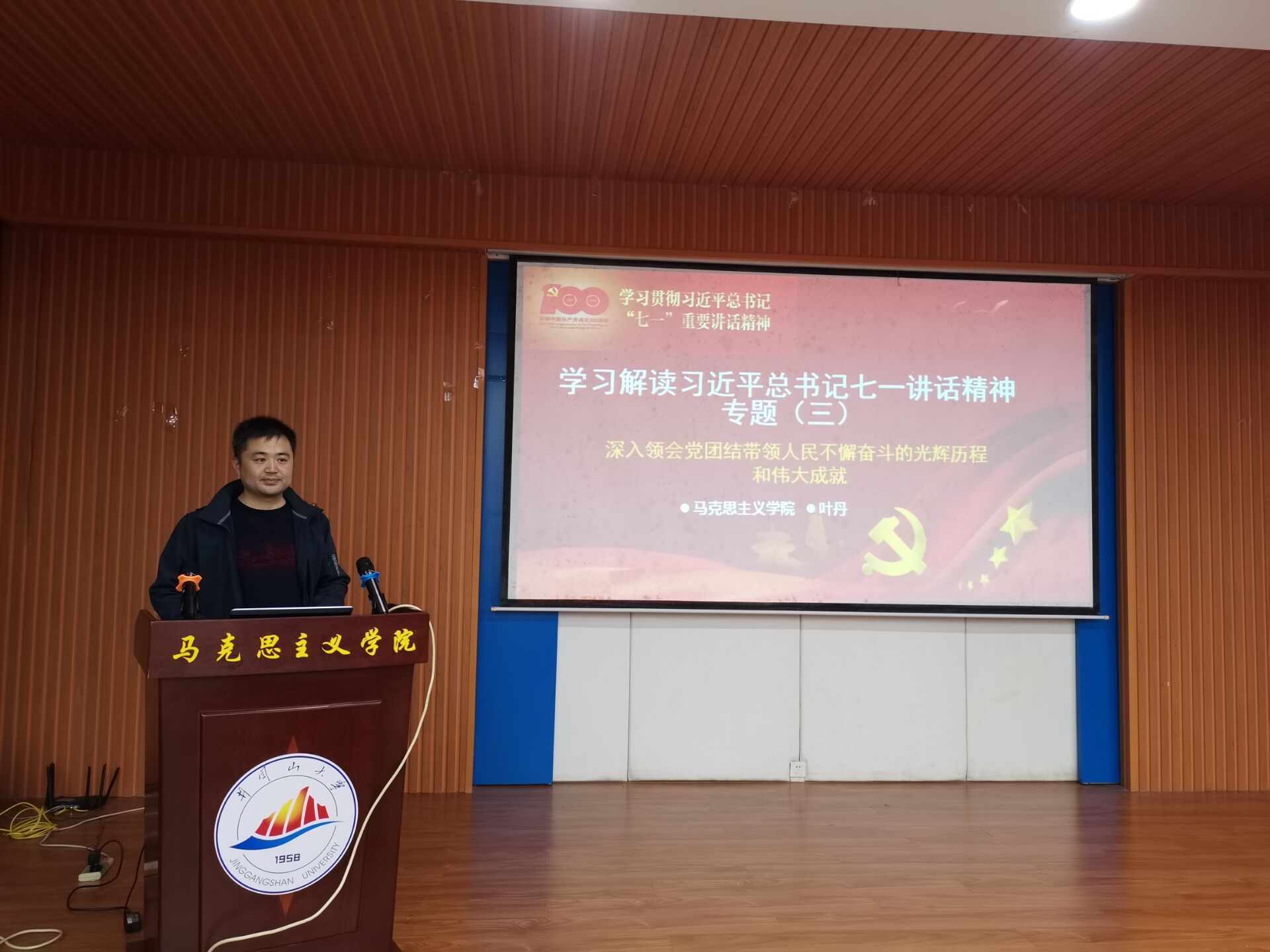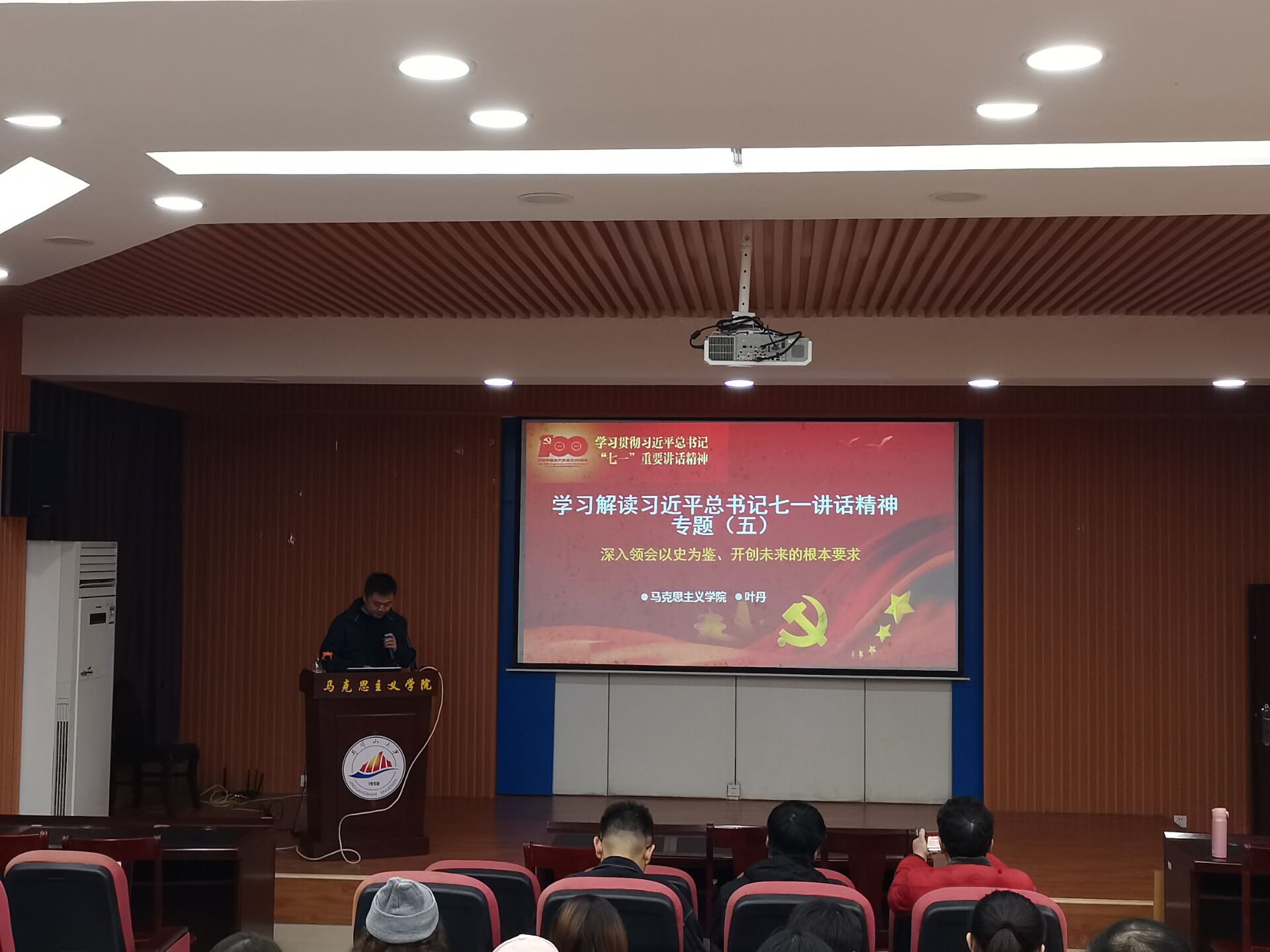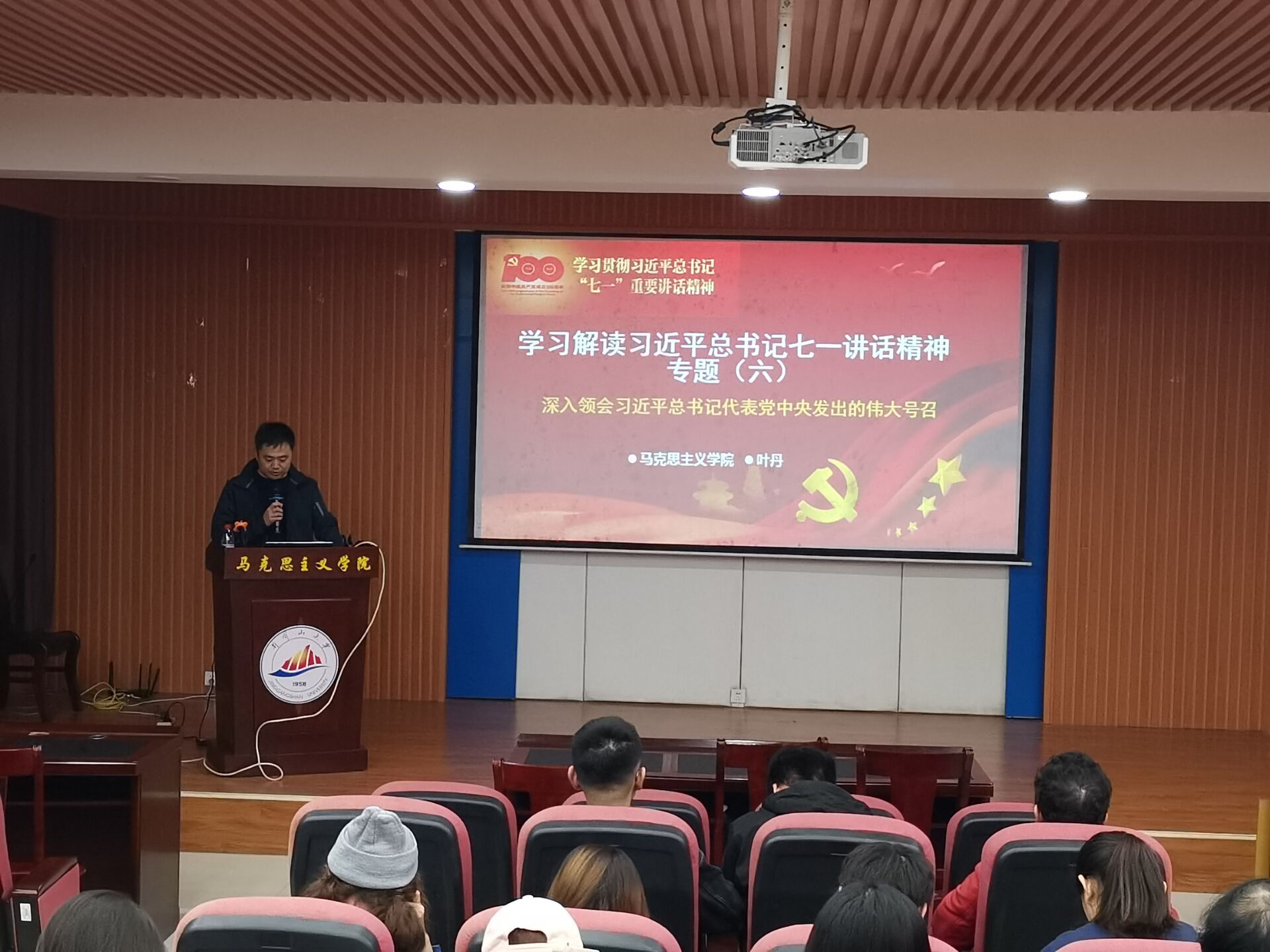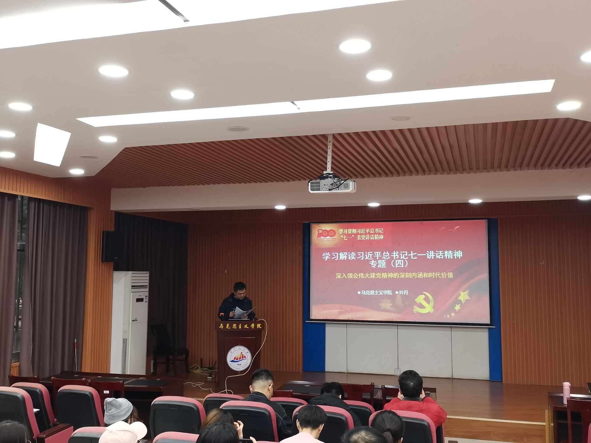 11月4日下午,学院党委理论学习中心组举行专题学习(扩大)会议,开展习近平总书记“七一”重要讲话精神第三、四、五、六专题学习。会议由叶丹副书记主讲,全体师生党员和入党积极分子参加。