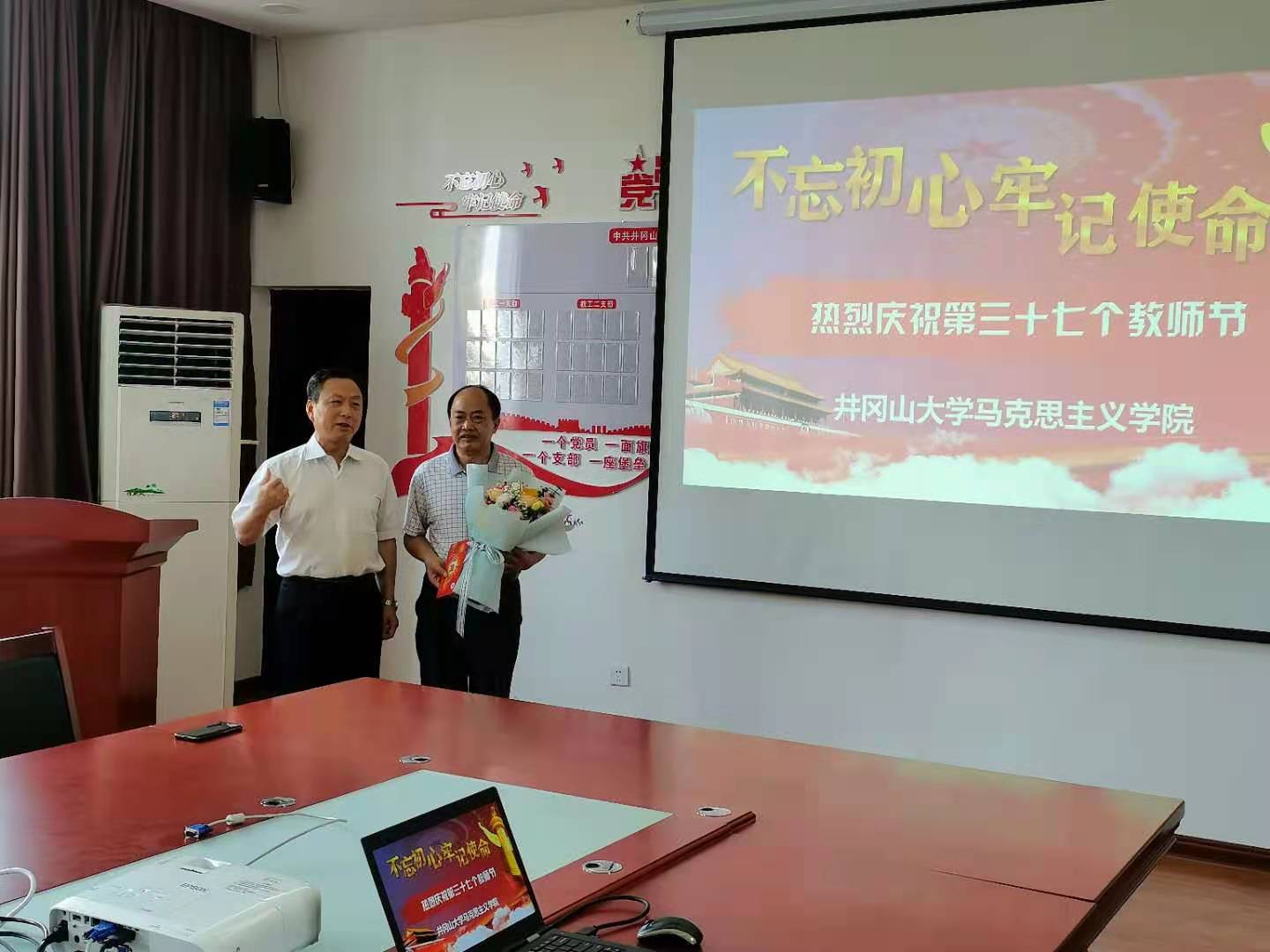 在第37个教师节来临之际,校党委常委、纪委书记史胜平在有关部门负责人陪同下走访慰问了学院思政课教师罗建清,为他送上节日的祝福。