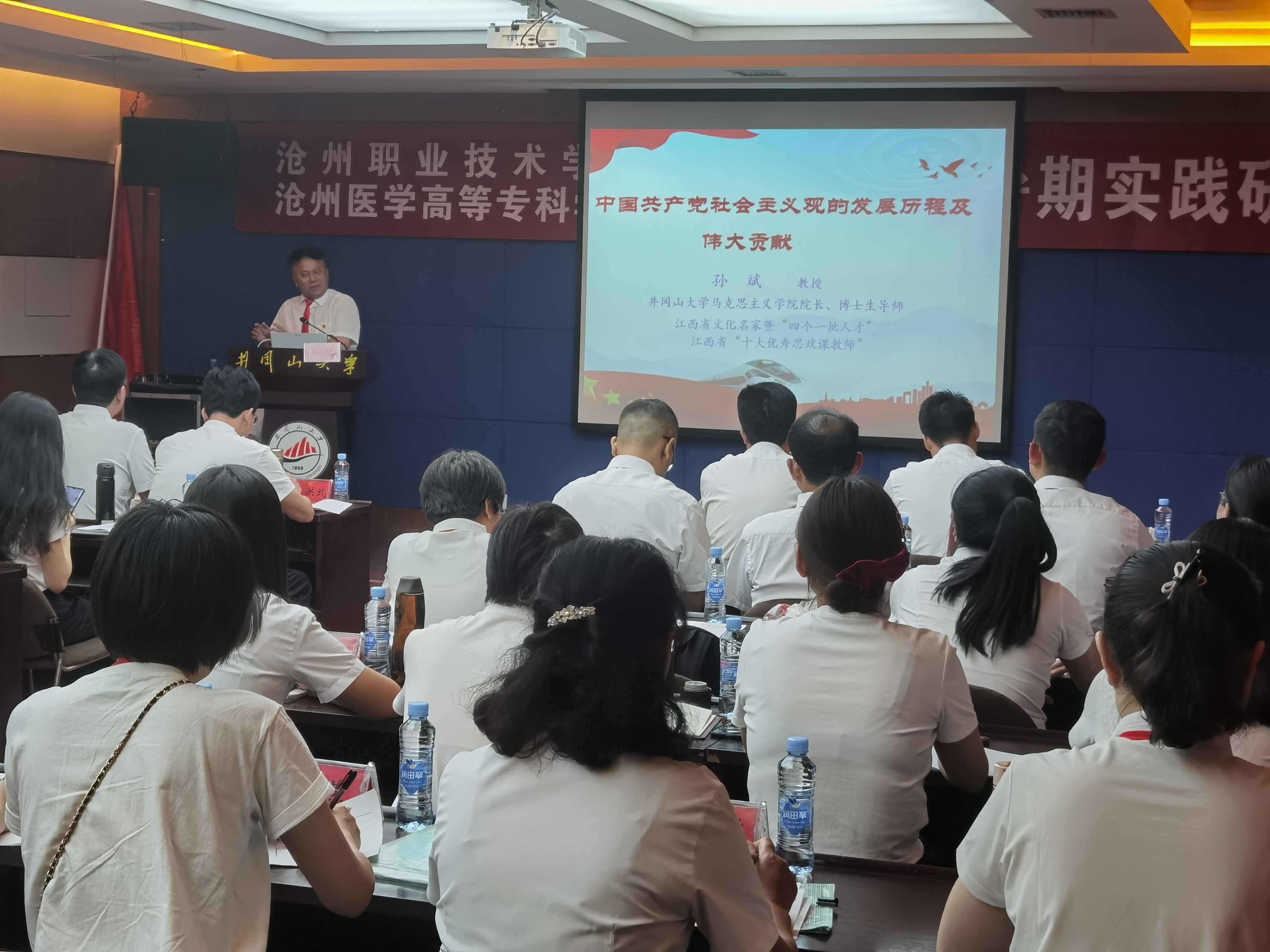 7月9日,学院院长孙斌教授为沧州职业技术学院、沧州医学高等专科学校思政教师暑期实践研修班40余人做专题报告—《中国共产党社会主义观的理论创新与伟大贡献》。