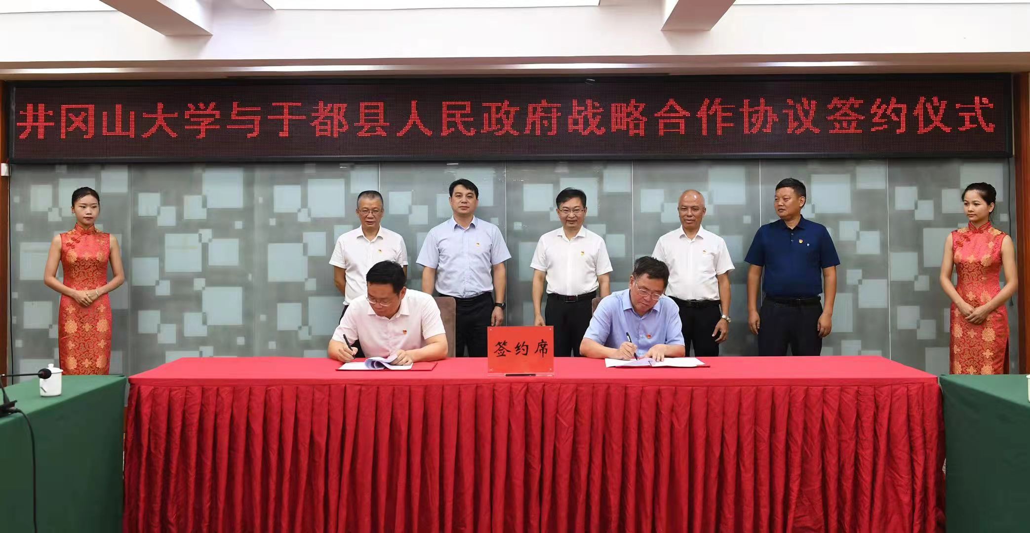 2021年6月18日上午,井冈山大学与于都县政府在于都县长征宾馆签订校地合作协议。井冈山党委副书记、校长曾建平,井冈山大学党委常委、副校长陈小林,于都县委书记陈阳山,于都县委副书记、县长黄法及于都县政府各行政部门主要领导出席签约仪式。陈小林副校长与黄法县长分别代表井冈山大学及于都县人民政府在合作协议上签字。