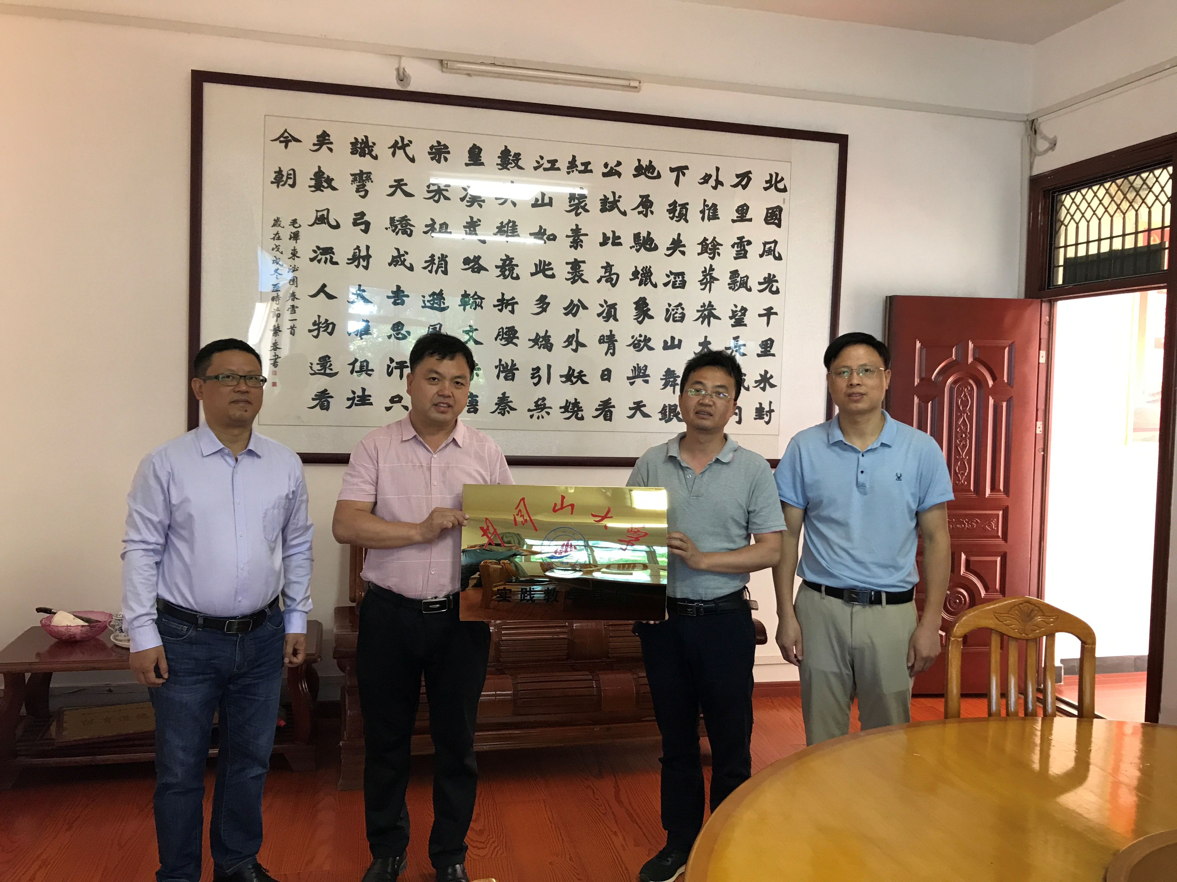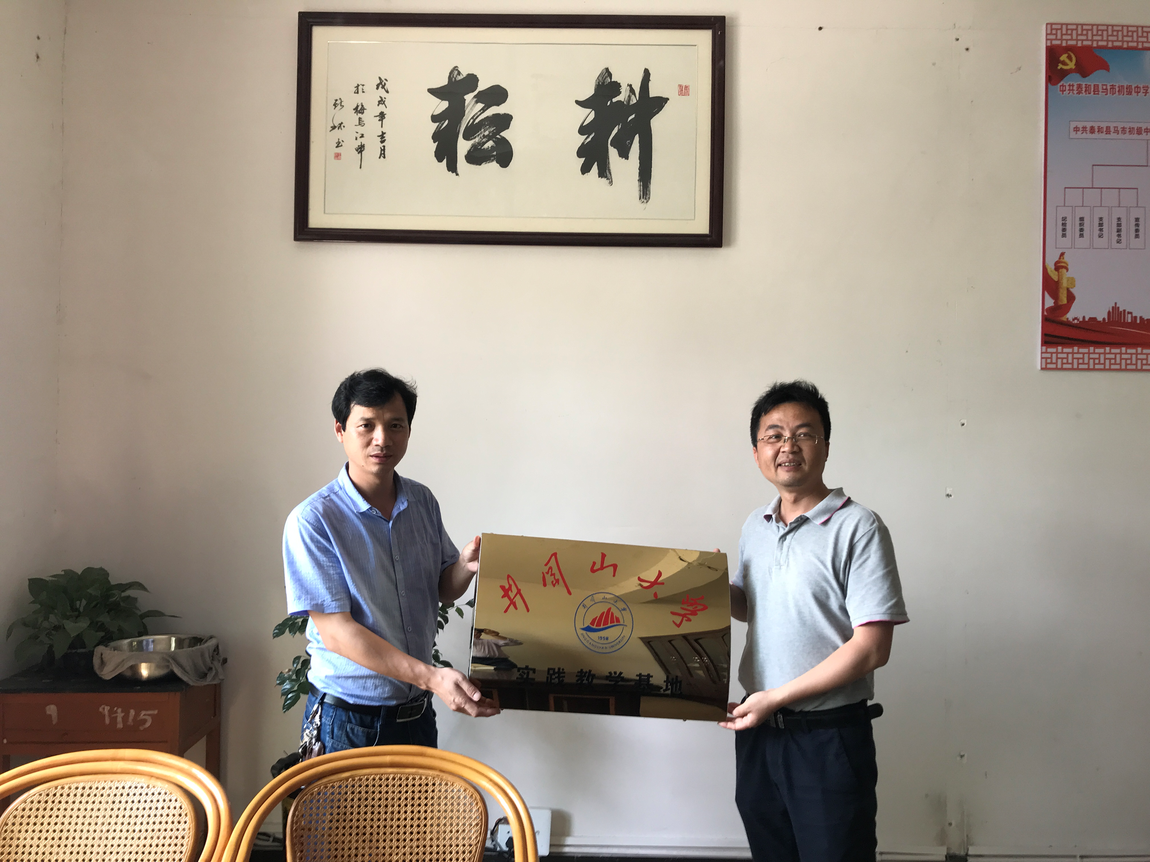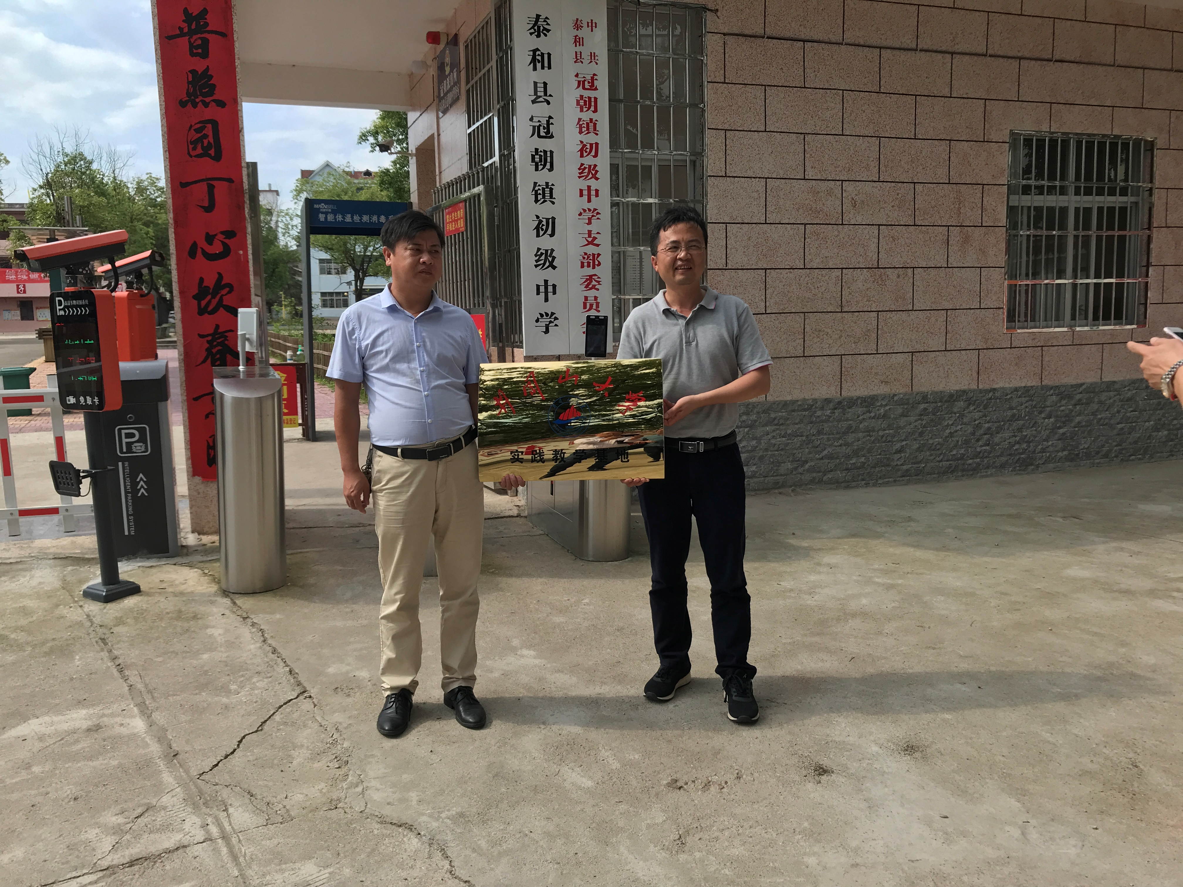 为增强我院师范生教学技能训练,培养优秀的教师人才,加强与各地中学协同合作,2021年6月7日,石劲松副院长、肖海鹰和刘斌等一行三人到泰和冠朝中学、禾市中学、马市中学和吉安四中举行了实践教学基地挂牌活动,得到泰和县冠朝中学郭尚根书记、禾市中学朱群峰校长、马市中学罗烈汉校长以及吉安四中彭细山校长等领导的热烈欢迎。实践教学基地挂牌仪式结束后,双方均表示,将加强合作,发挥各自的优势,共同培养师范生。我院将根据各地学校的实际要求,派遣实习生到各地进行教学实践,各中学领导也表示,将选派最优秀的指导老师帮助、指导师范生教学实践。
