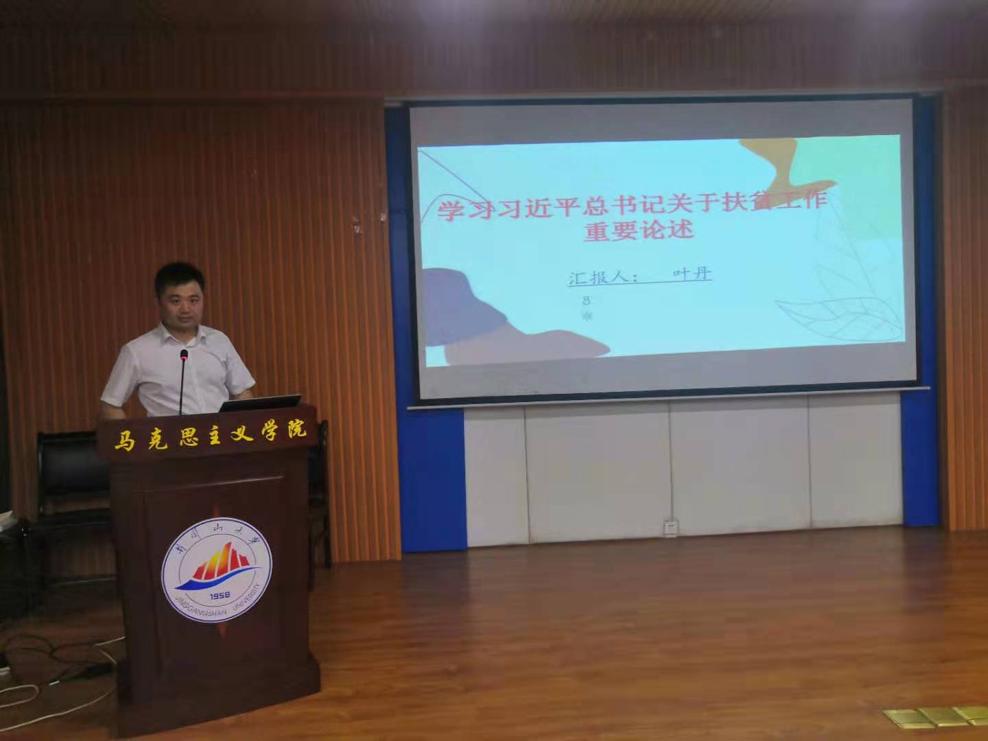 会上,叶丹做了以《学习习近平总书记关于扶贫工作论述 践行精准扶贫工作》为题的专题党课。他通过阐述如何把握习近平总书记关于扶贫工作重要论述的核心要义以及结合自身身体力行践行精准扶贫的工作经历,使大家深刻认识到习近平总书记关于扶贫工作重要论述是习近平新时代中国特色社会主义思想的重要内容,开创了马克思主义反贫困理论中国化新境界,为丰富和发展新时代中国特色扶贫开发理论作出了新贡献,为全球减贫事业贡献了中国方案和中国智慧,是我们打赢打好脱贫攻坚战的根本遵循和行动指南;深刻认识到脱贫攻坚取得举世瞩目的成就,靠的是党的坚强领导,靠的是中华民族自力更生、艰苦奋斗的精神品质,靠的是新中国成立以来特别是改革开放以来积累的坚实物质基础,靠的是一任接着一任干的坚守执着,靠的是全党全国各族人民的团结奋斗。