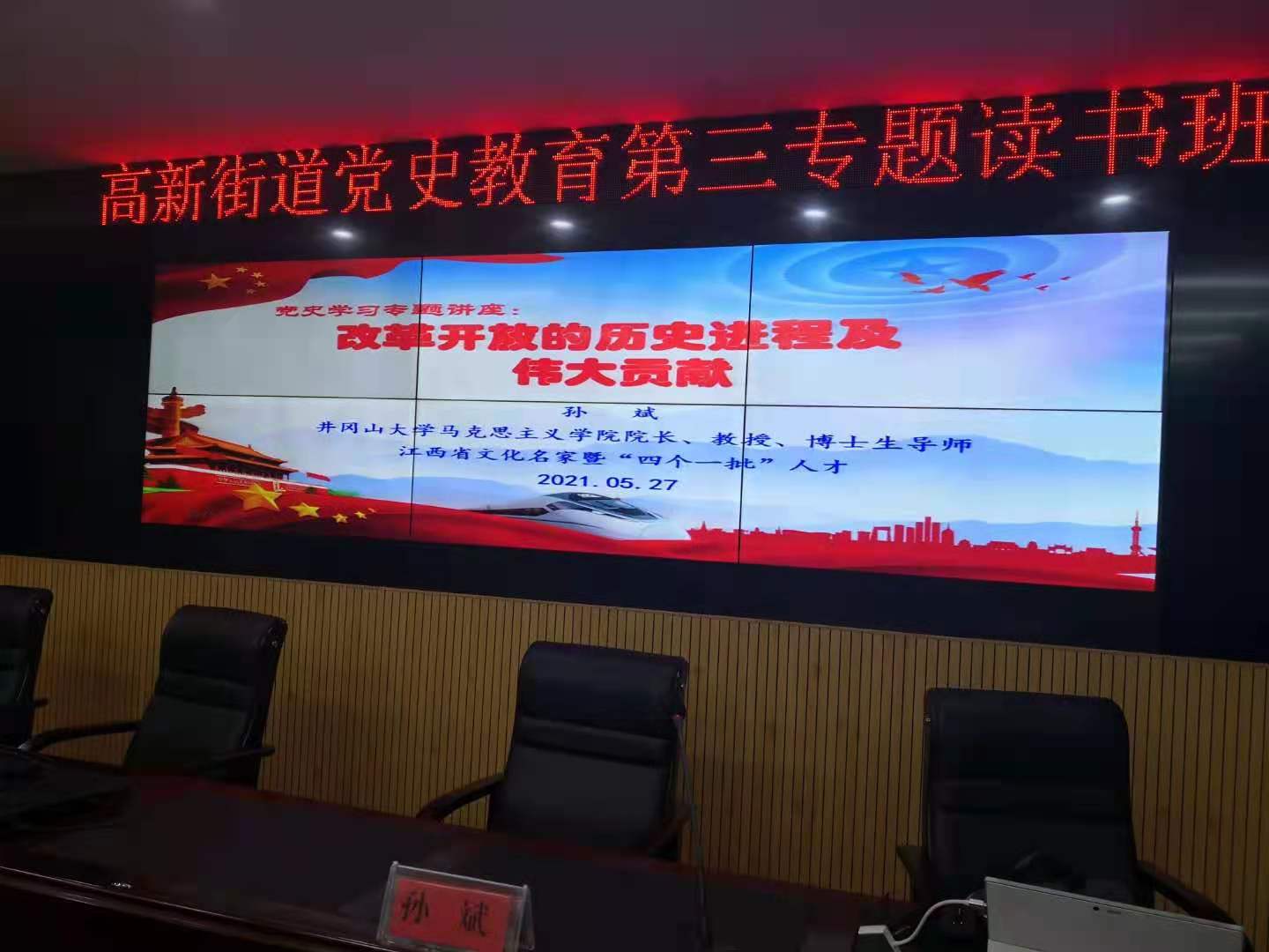 5月27日,孙斌院长应井开区高新街道之邀,为井开区高新街道第三专题读书班做了《改革开放的历史进程及伟大的贡献》专题报告。