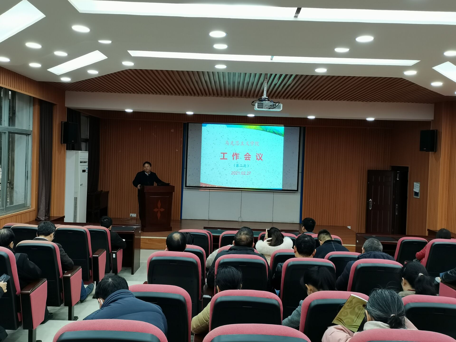 2月27日下午,学院召开2021年春季开学全体教职工大会。会议由院长孙斌主持,学院领导叶丹、石劲松及全体教职工参加了大会。