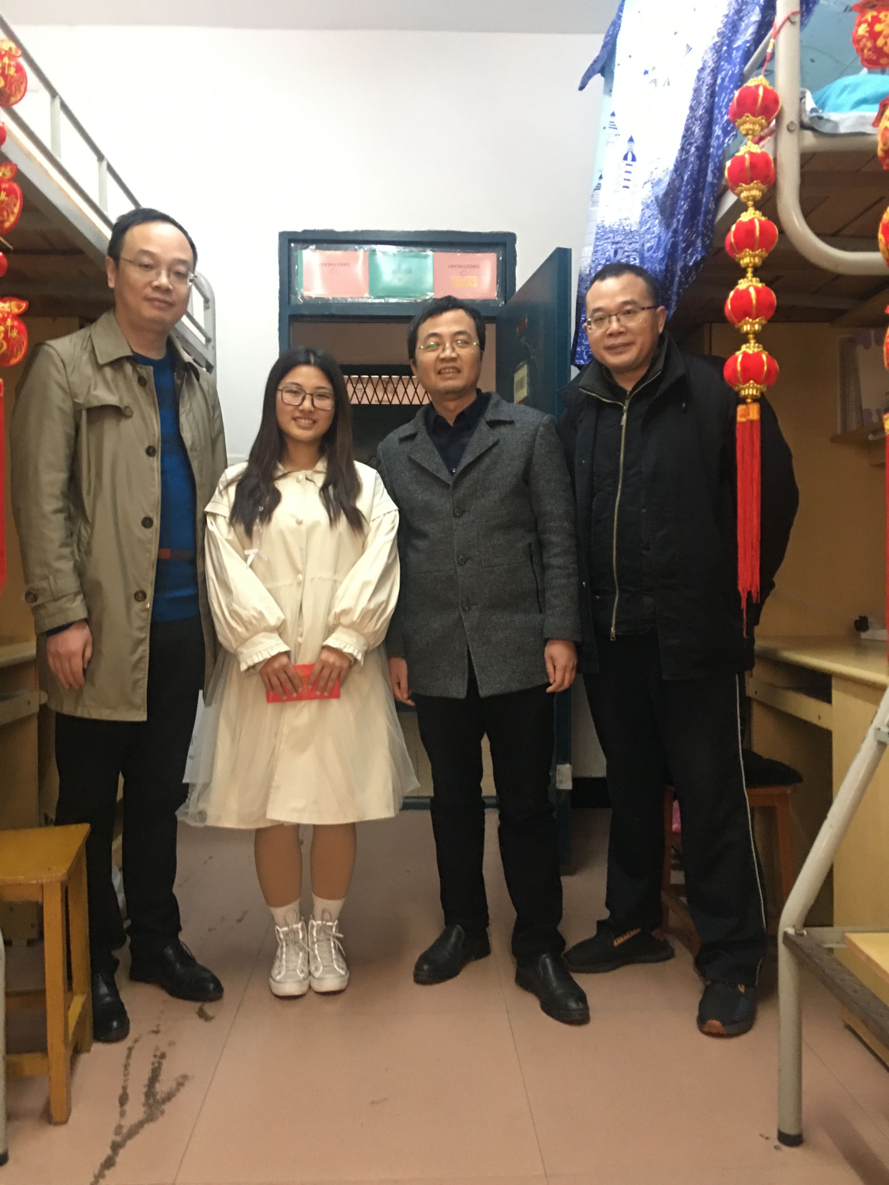 在学生宿舍,党委书记李泉代表学院向留在学校过年的两位同学致以新春的问候,送上学院的心意和关怀。李书记还特意为留校学生准备了春联、窗花等喜庆物件,增添节日气氛。他希望寒假留校学生能够在学校感受到家的温馨,同时利用好假期在校时间,不断充实自己,度过一个温暖、充实、开心的假期。石劲松副院长就毕业论文、寒假实践等重要事项,给予党史毕业班张宇聪同学悉心指导。学院领导老师们嘘寒问暖,倍加关怀。同学们纷纷表示,感谢老师们对自己的关心,让他们感受到年的味道、家的温暖,他们会照顾好自己,珍惜在校时间好好学习,不辜负老师们的厚望。