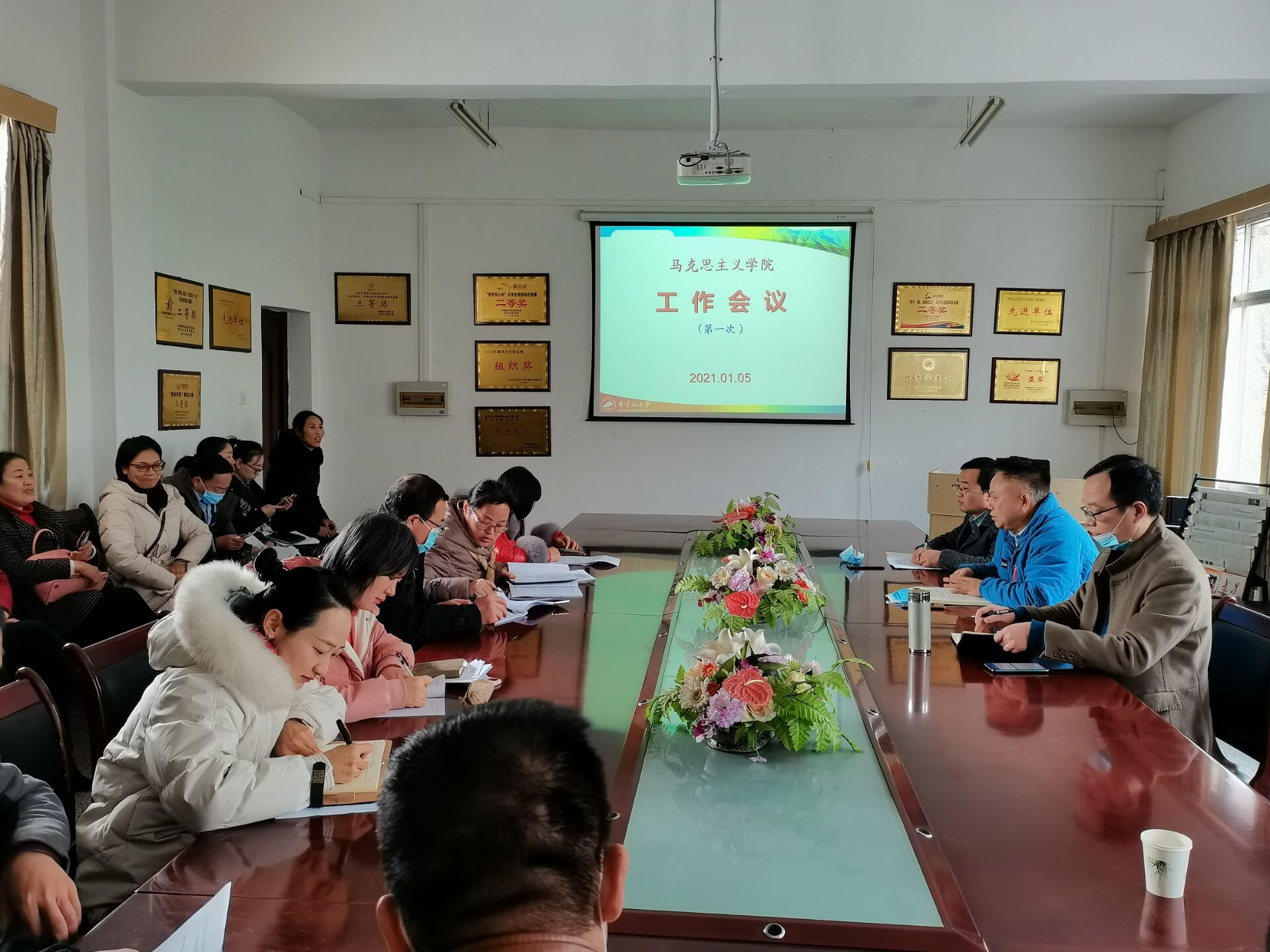 为贯彻落实学校关于寒假放假前后有关工作安排的通知要求,扎实推进学院期末及寒假期间各项工作的落实,学院于1月5日下午组织召开了全体教职工大会。会议由院长孙斌主持,党委书记李泉、副院长石劲松及全体教职工参加了此次会议。