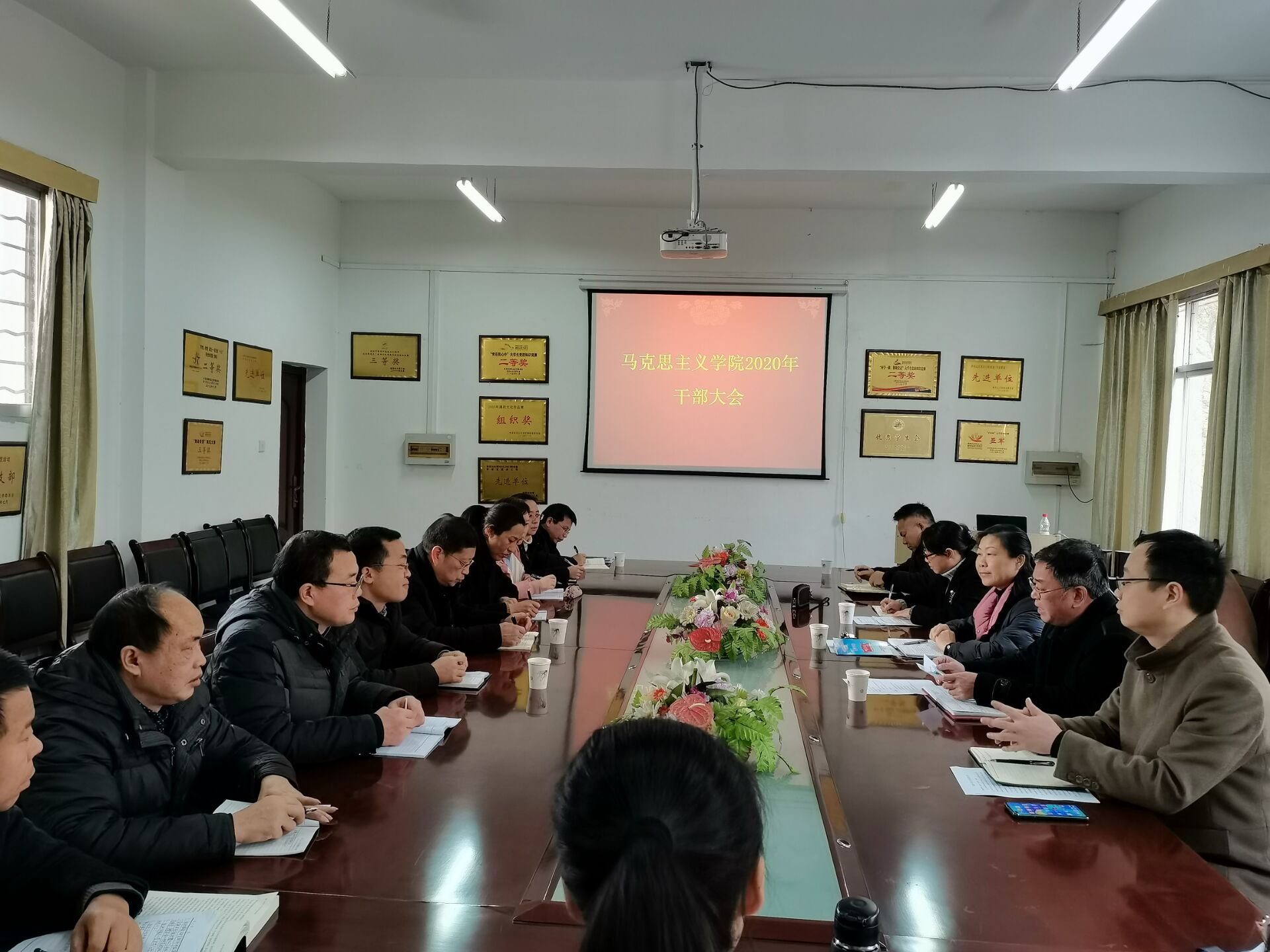 胡春晓书记认真听取了学院2020年工作汇报,对我院一年来在党的建设、硕士点申报、思政课建设、学科科研等方面取得成绩给予了充分肯定。她介绍了学校此次干部调整工作的背景、原则及基本情况进行了介绍,逐个点评了我院提拔和调整的干部,并对学院新的领导班子提出了明确要求。胡书记强调,马克思主义学院虽然师生人数不多但地位特殊、在学校落实立德树人根本任务中的份量很重。学院必须坚定正确的政治方向,切实巩固马克思主义在学院建设发展各方面的指导地位,落实“马院姓马、在马言马”的鲜明导向和办学原则;要营造和谐的工作氛围,班子之间相互尊重、加强沟通、增进团结,不断增强学院的凝聚力、向心力,营造良好的院风、教风、学风;要加强学科专业建设,以本次申硕成功为契机,加强硕士学位授予点建设,提高课程教学质量和效果,为培养研究生做好准备;要加强特色马克思主义学院建设,按照特色马院建设标准和教育教学需求,做好一号教学楼搬迁改造工作;要廉洁自律,干净做事,落实全面从严治党主体责任,严守政治纪律和政治规矩,切实履行第一责任人责任和“一岗双责”职责,做到想干事、会干事、干成事、不出事。