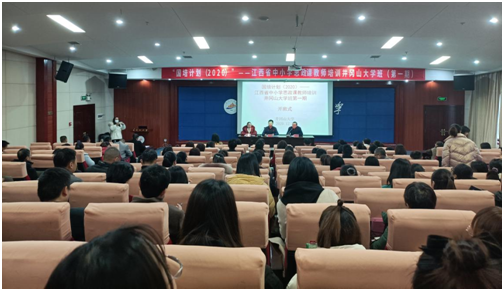12月3日上午8:00,由我校承办的“国培计划(2020)”——江西省中小学思政课教师培训井冈山大学班第一期开班典礼在我校学术交流中心报告厅隆重举行。我校马克思主义学院党委副书记、思政课教师培训项目实施负责人叶丹,马克思主义学院教师、培训班班主任周庆峰博士、饶华萍老师,继续教育与培训学院相关负责人出席开班典礼。来自全省各市县的200余名中小学思政课教师参加了开班仪式。