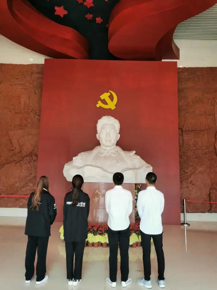站在纪念馆前,同学们感受到浓浓的红色情谊。在这儿,成员们了解到方志敏的故事。1919年五四运动波及弋阳,方志敏以满腔爱国热情,投入这次反帝爱国运动,并立下报国救国的远大志向。1924年3月,方志敏在南昌加入中国共产党,他激动地写道:“共产党员——这是一个极尊贵的名词,我加入了共产党,做了共产党员,我是如何的引以为荣啊!从此,我的一切,直至我的生命都交给党去了。”方志敏为了可爱的中国,奋斗了一生。为表达敬意,同学们在方志敏雕塑像面前朗诵《可爱的中国》。同学们声情并茂,心中满是对方志敏同志的敬佩。