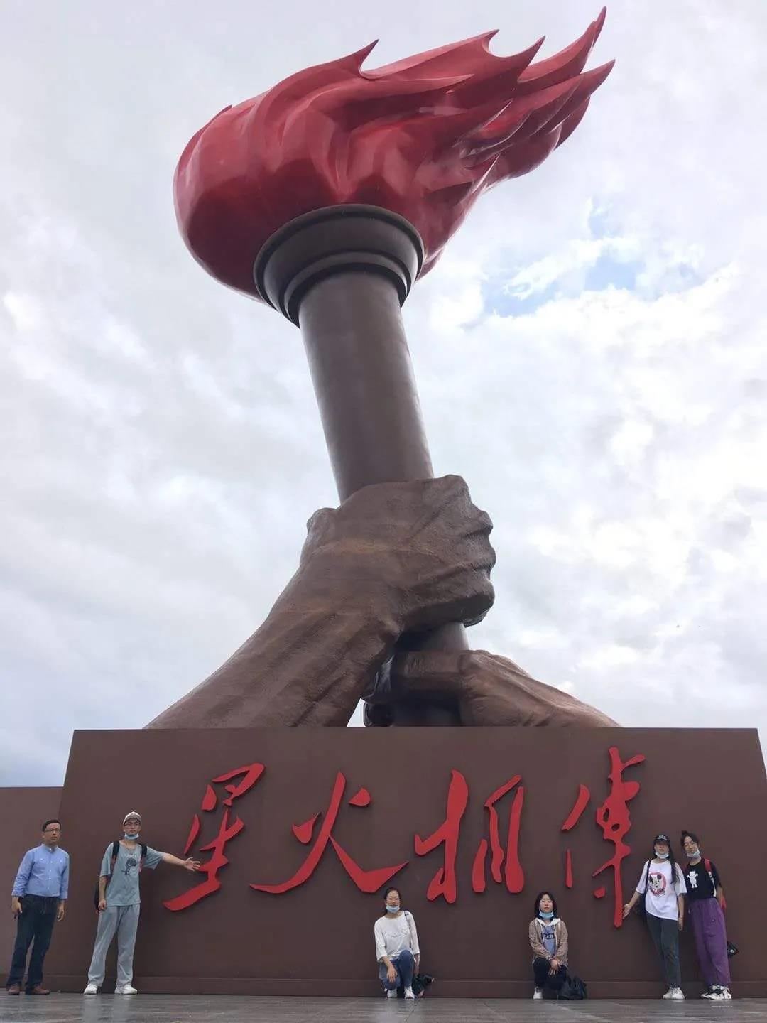 最后,一行人来到火炬广场。映入眼帘的是鲜红的火炬,那火炬代表的是生机与活力,代表的是坚定的信念,代表的是共产党的热血。此时的天,是灰蒙蒙的,但同学们的内心是炽热的,是光明的!