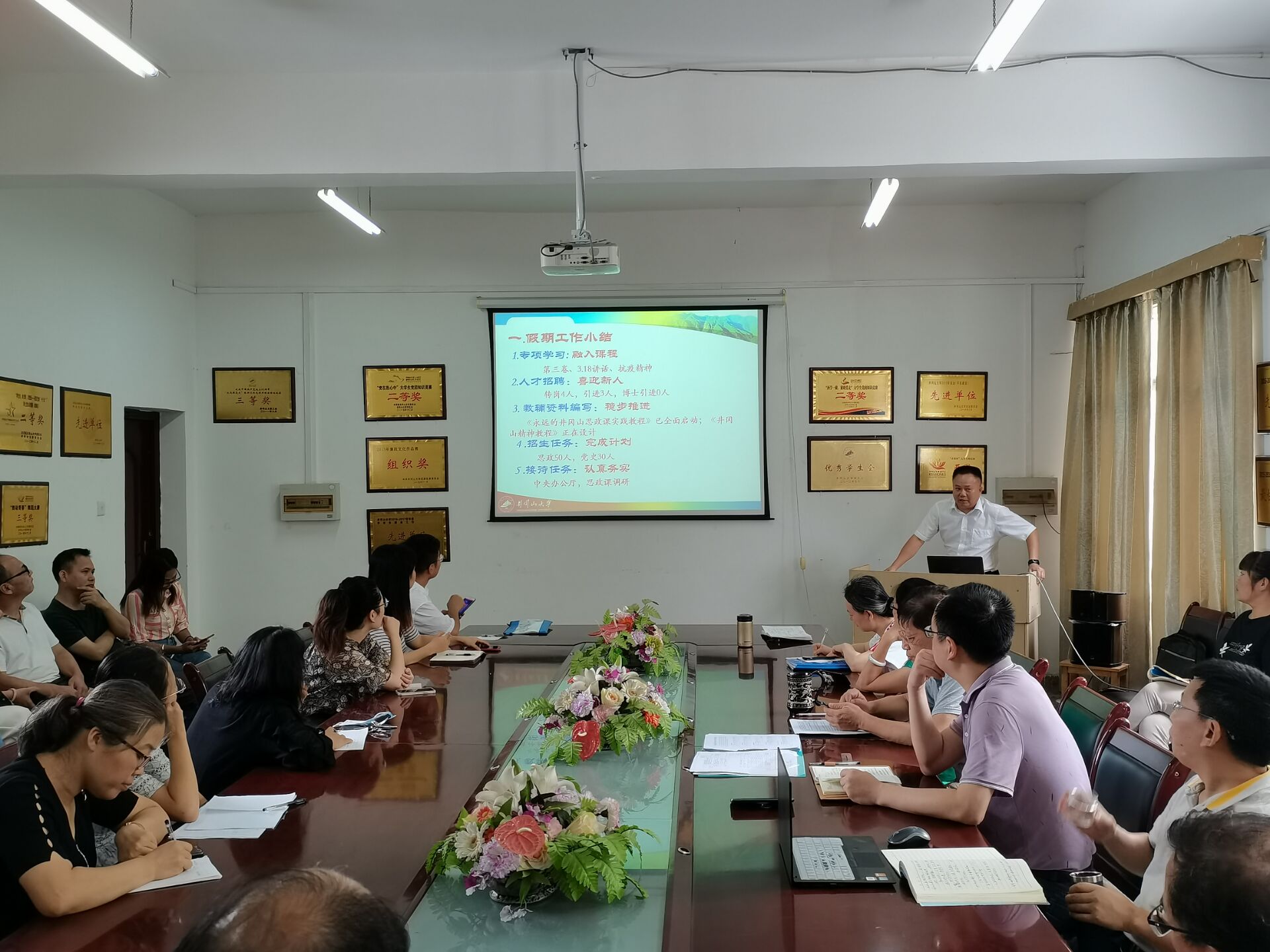 张梅龙对学院科研、学科工作开展情况进行了通报和小结,对学院科研、学科建设、马克思主义学科申硕等工作进行了部署。