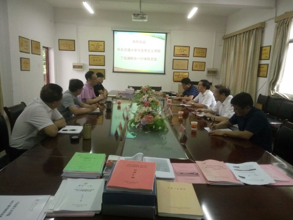 2020年6月5日上午,在学院会议室,华东交通大学马克思主义学院院长丁佐湘一行4人来院就加强思政课建设与学院进行了座谈交流。曾建平校长会见了丁佐湘一行。学院党委书记李泉、副院长张梅龙、孙斌、政法学院副院长李耀锋等参加了此次交流会。