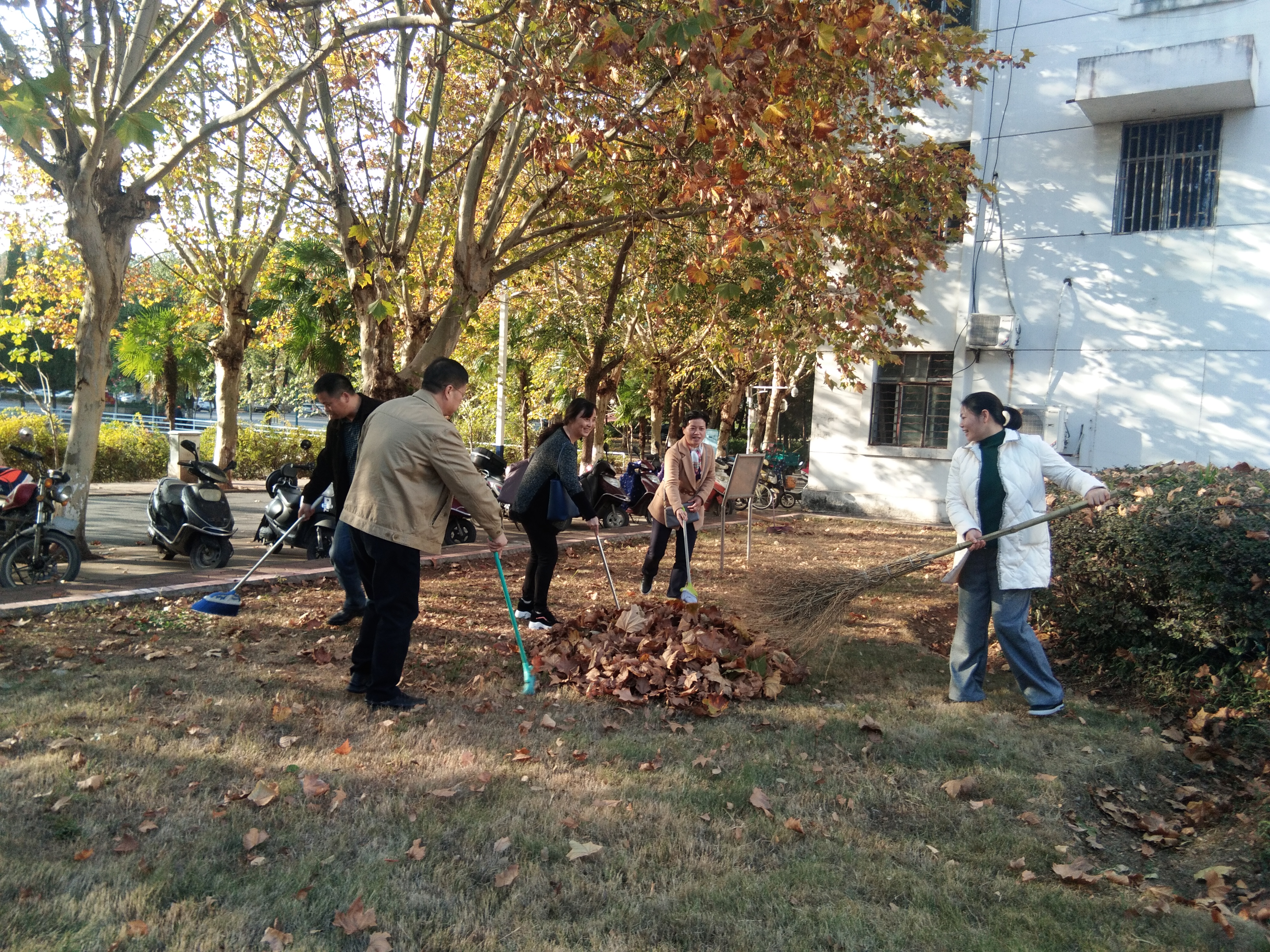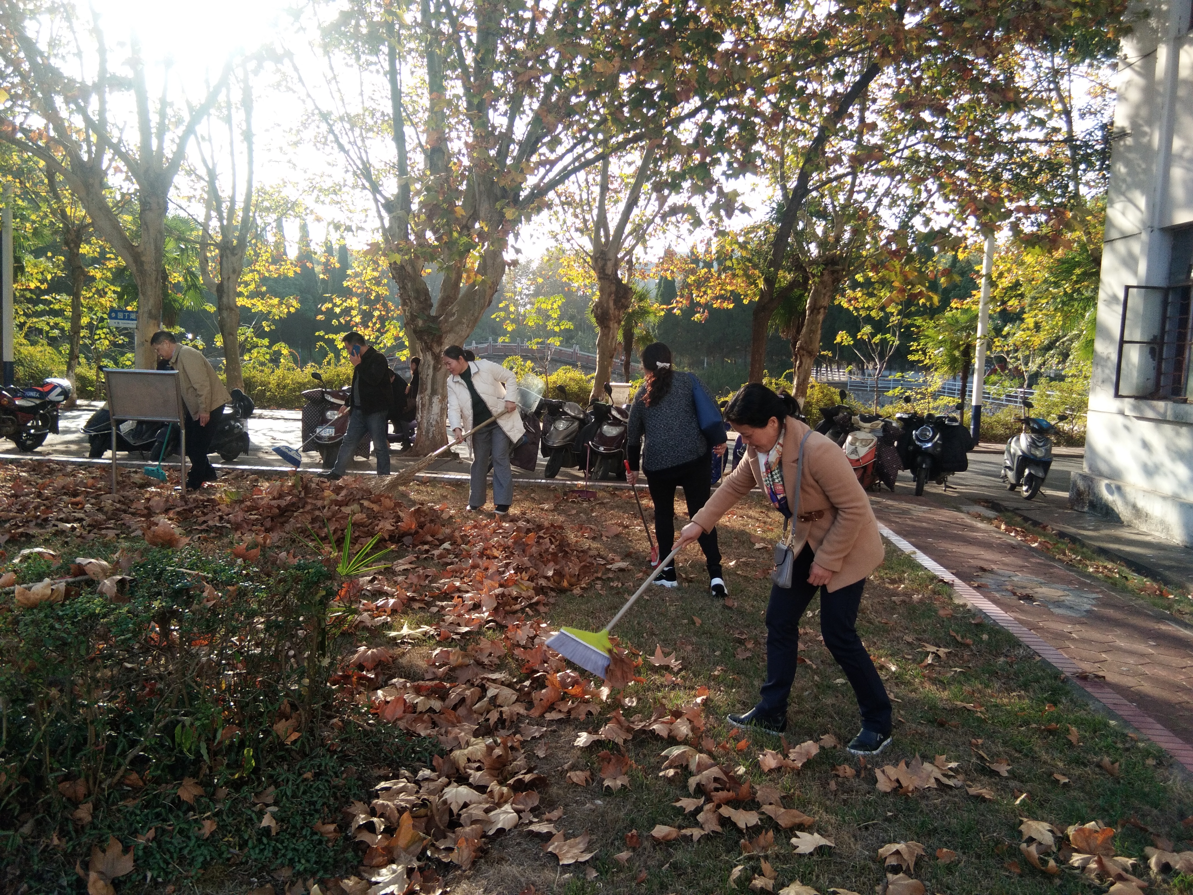 11月19日下午,马院教工二支部党员来到四栋办公楼下打扫卫生,开展义务劳动活动。