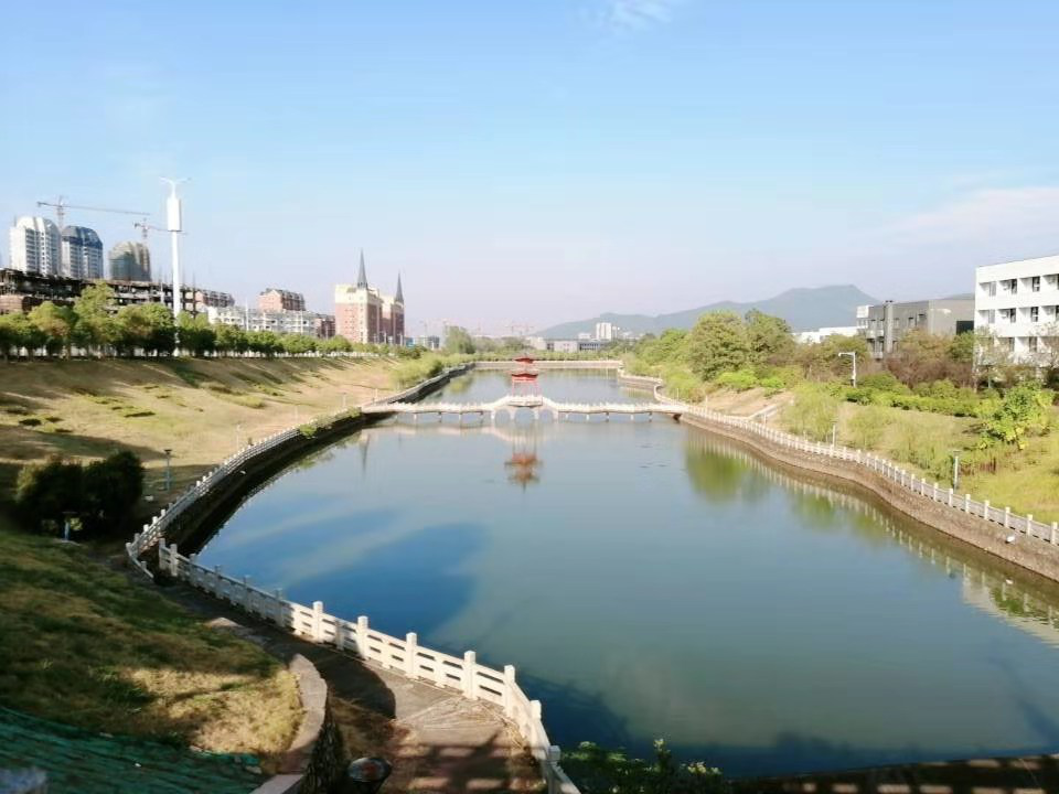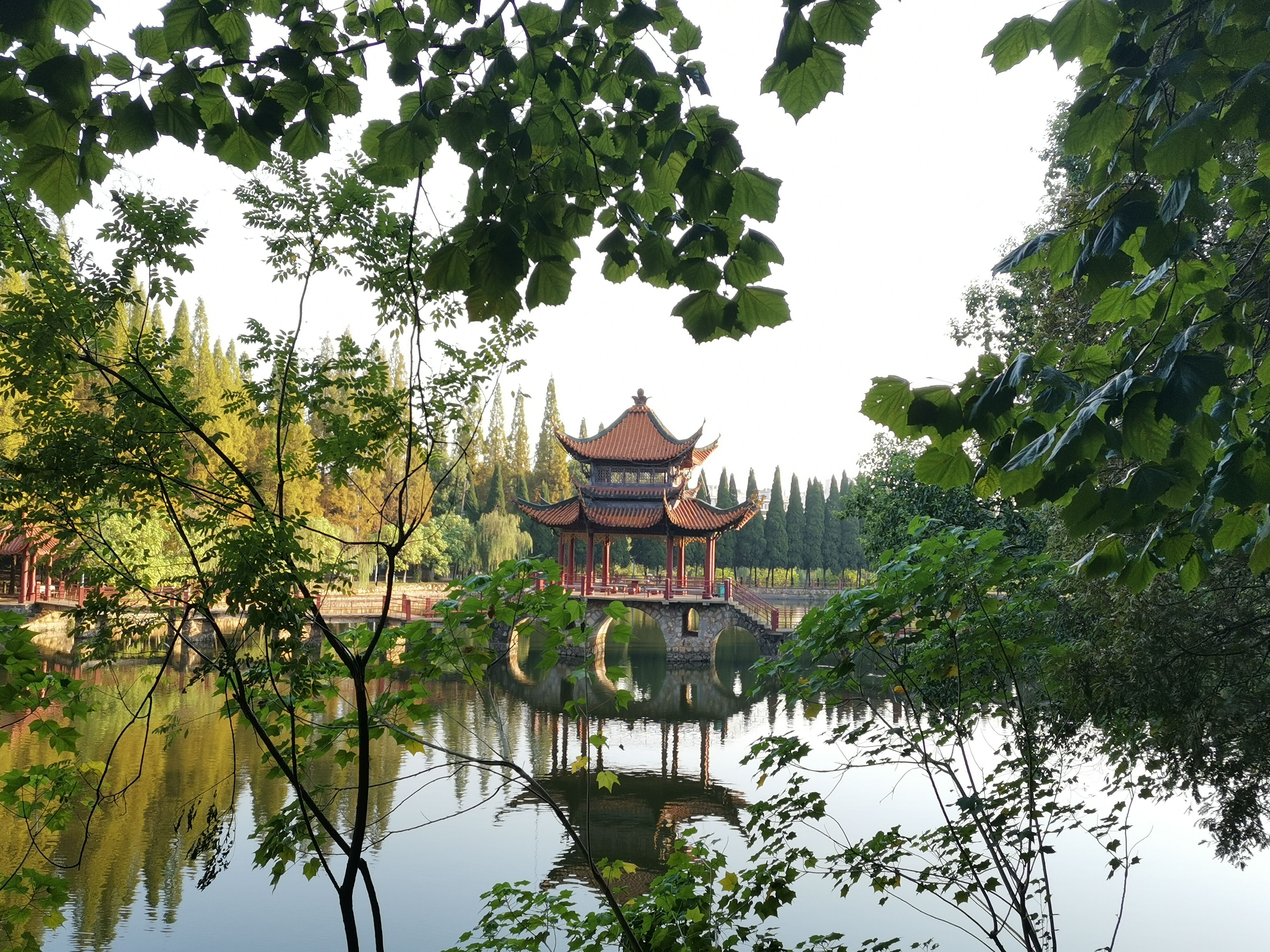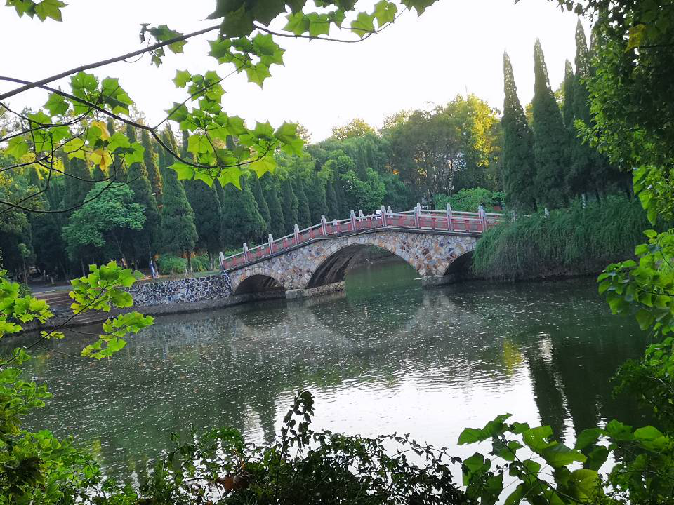 这三张照片选取了我们学校的标志性建筑:湖心亭和新图书馆。