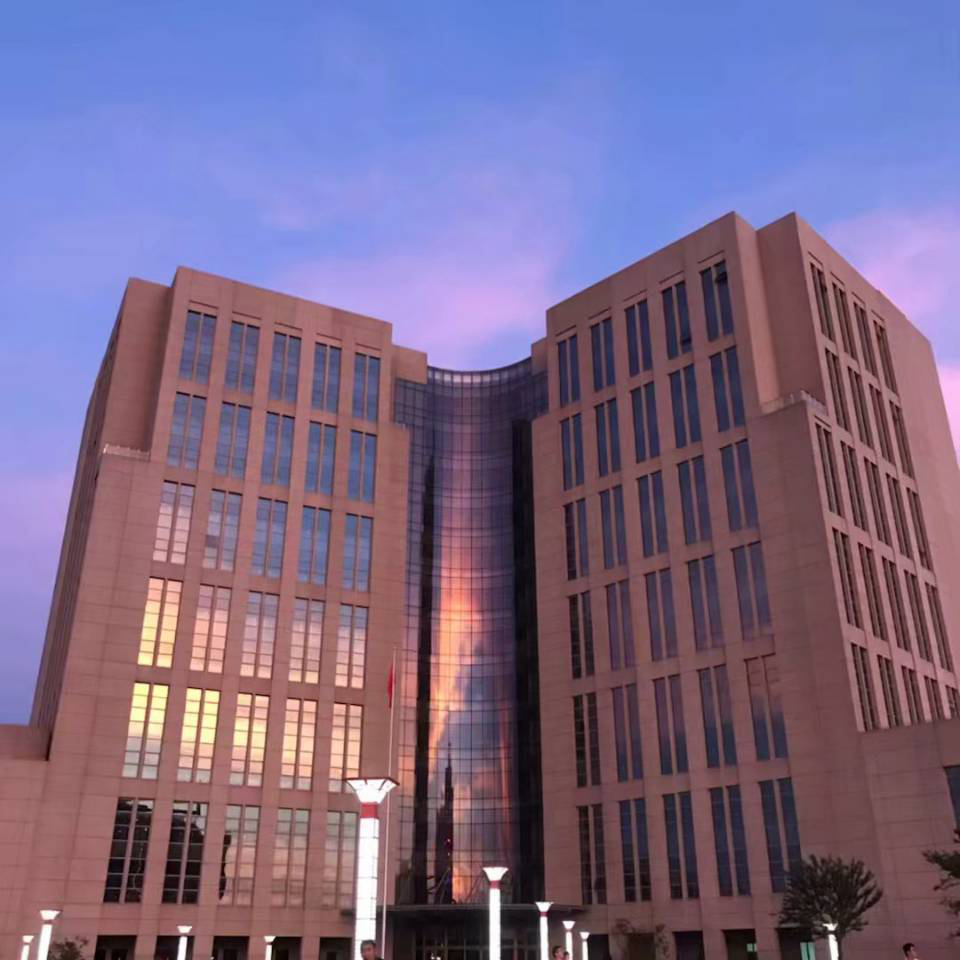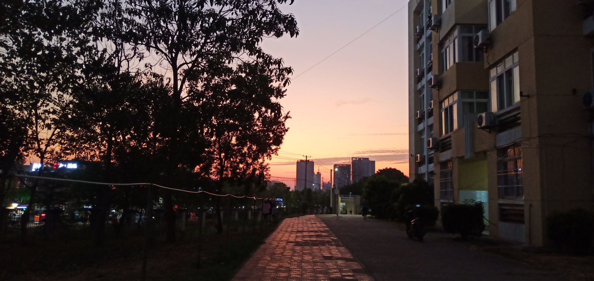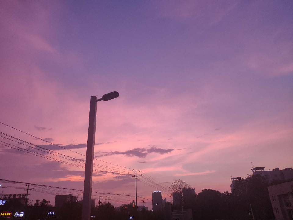 傍晚的图书馆玻璃折射出一片紫色的光辉,看起来很好看。