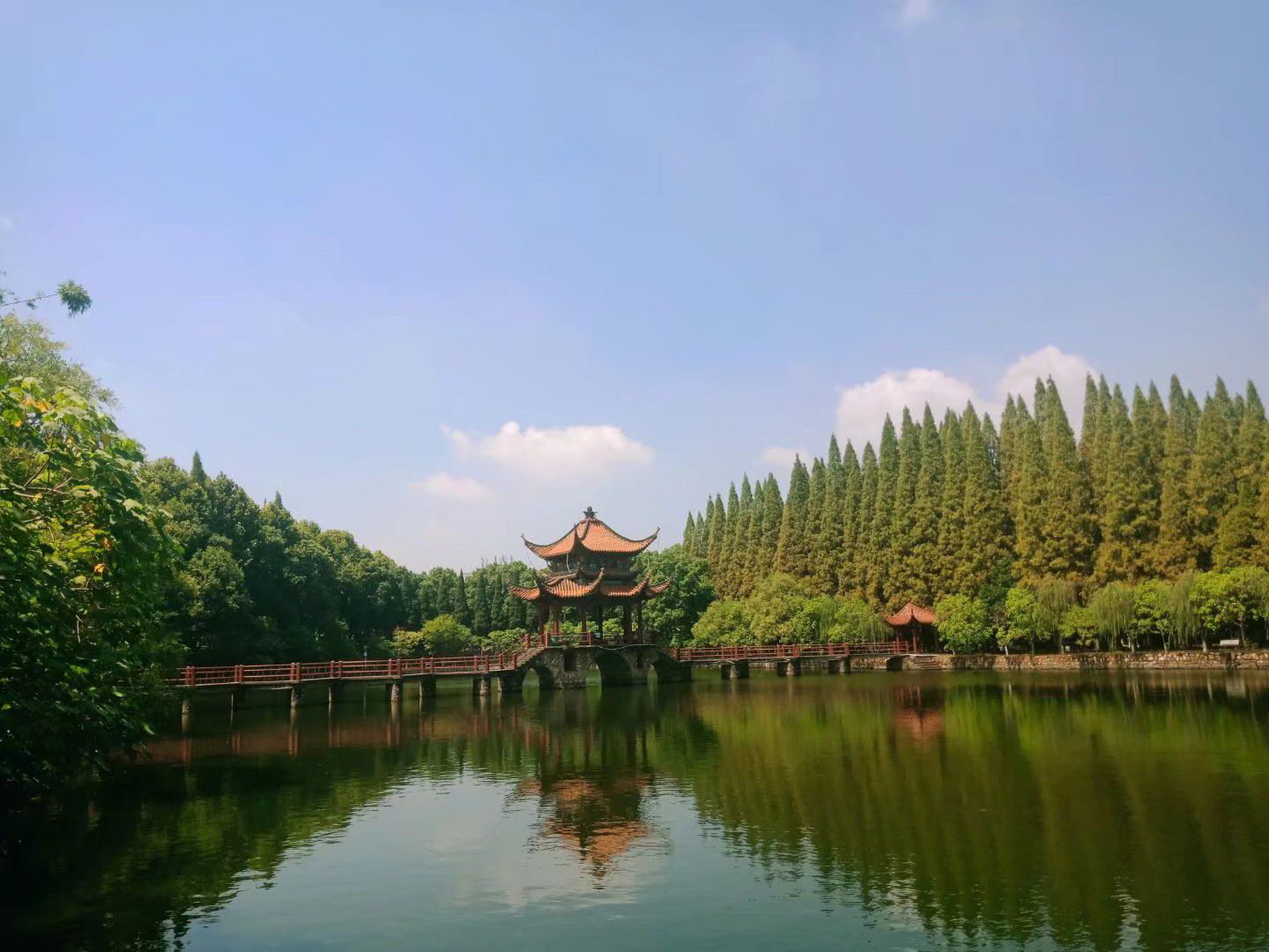 井大坐落于井冈山下,在色彩如国旗般鲜艳的红土地上,碧湖蓝天间的小桥亭落;