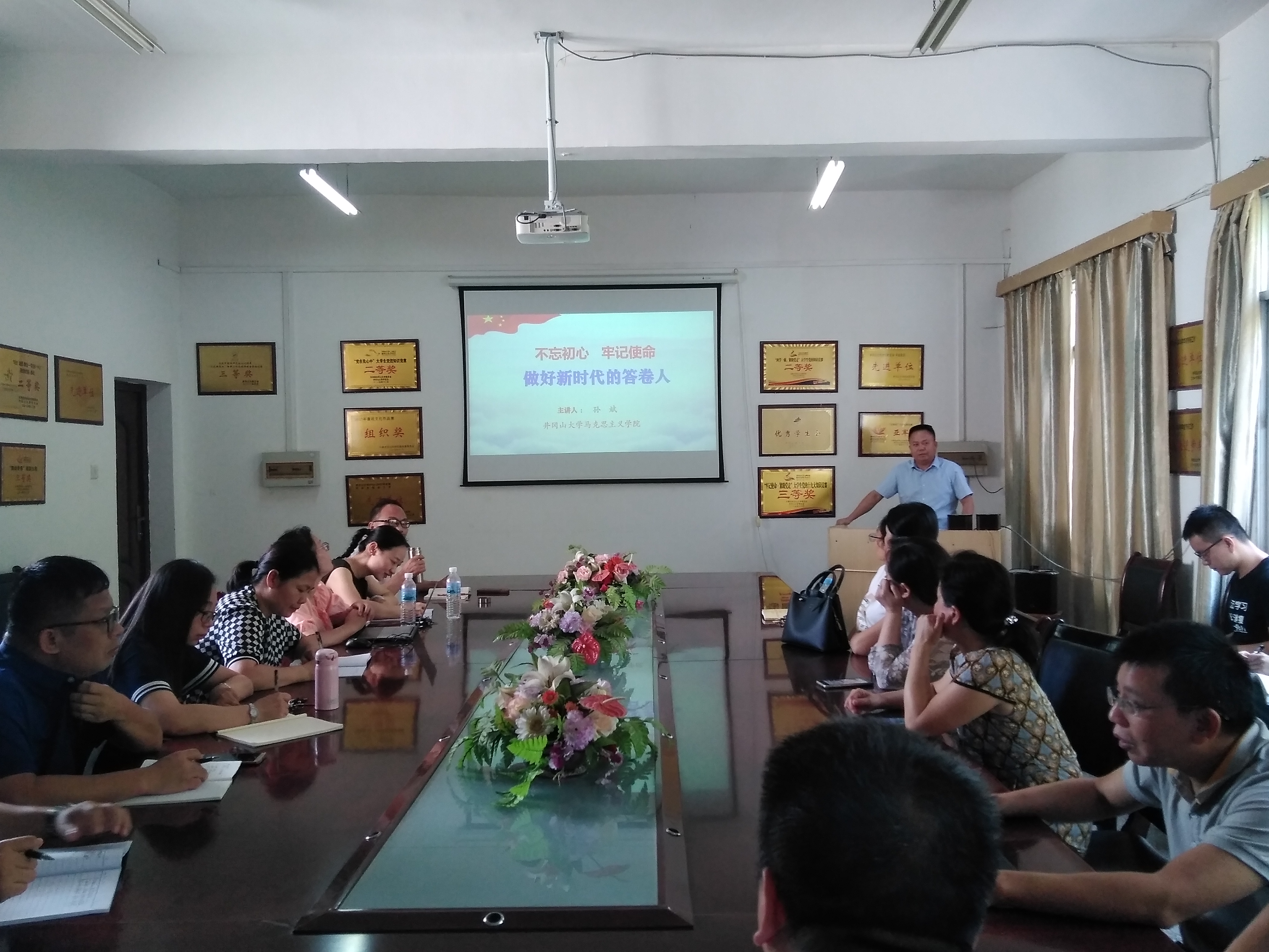 为了落实开展“不忘初心 牢记使命”主题教育。9月17日下午,学院教工第一党支部联合教工第二党支部、井冈山研究中心党支部和学生党支部开展“不忘初心 牢记使命 做好新时代的答卷人”专题学习报告会。报告会由教工第一党支部书记孙斌主讲。