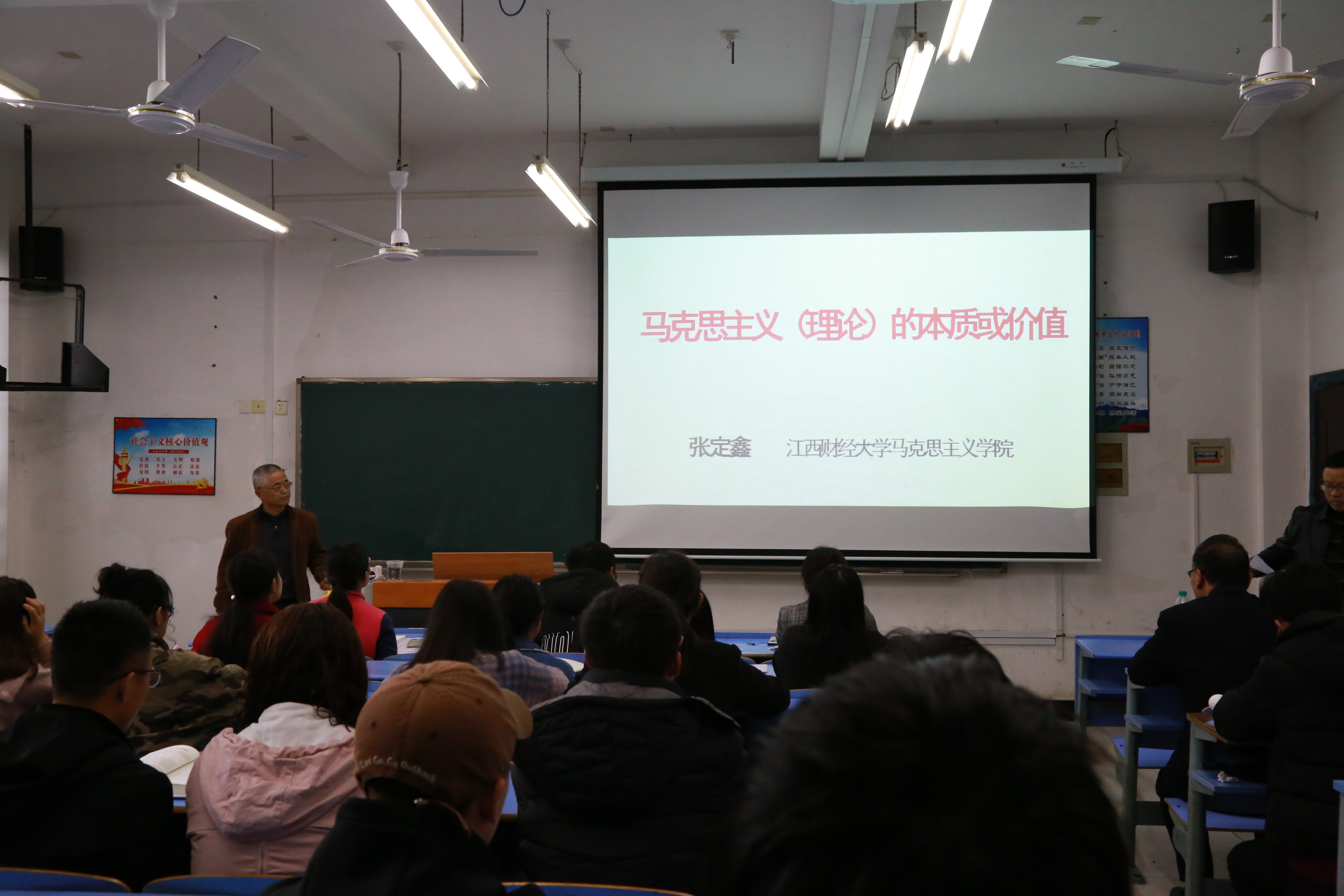 此次讲座的主题为“马克思主义(理论)的本质或价值”。讲座伊始,张定鑫教授首先为同学们介绍了马克思生平经历,号召同学们学习马克思的勇于探索、不畏艰难的高尚精神。随后张定鑫教授对马克思主义理论的发展作了一个简单讲解,让同学们对马克思主义理论的发展有了大致的了解。在谈到马克思主义理论的实际功用方面时,张定鑫教授结合马克思主义中国化对中国的积极影响对马克思主义理论的实际功用进行讲解,反驳了马克思主义理论无用的观点。讲座的尾声张定鑫教授给同学们传授了学习马克思主义理论的方法,叮嘱同学们要多读著作,静心学习。讲座结束后,副院长杜辉对此次讲座作了简短的总结,号召同学们从中汲取经验,以便对专业知识的学习有所裨益。