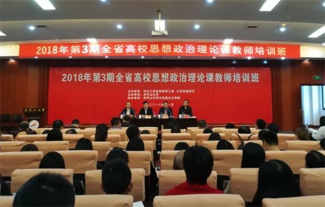 11月5日至7日,2018年全省高校第3期思想政治理论课教师培训班在我校开班。江西省教育工委宣传部长、省教育厅社政处处长邓文君出席并讲话,校党委常委、副校长陈小林致辞,校党委常委、副校长黄俭根主持会议,校党委常委、宣传部长李裕福出席。来自全省各高校的近百名思政理论课教师参加了开班式。