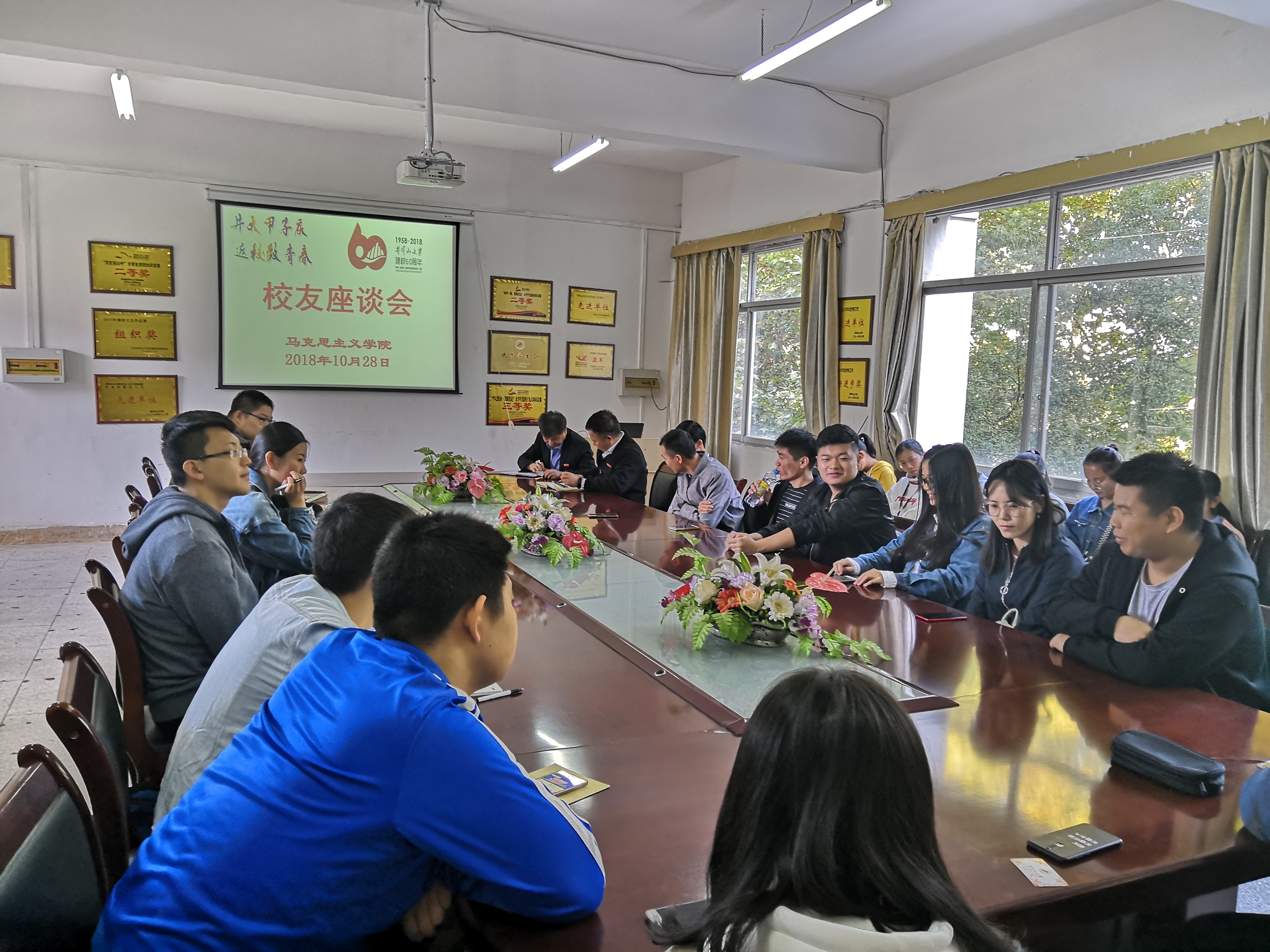 时值井冈山大学60周年校庆,我院邀请到马院历届毕业生返校参加校庆。 10月28日,在学院会议室举办了校友座谈会。党委书记胡桂生、副院长孙斌、2011级中共党史班主任邹平林、学院辅导员刘香玲,返校校友和部分在校生学生代表参加了此次座谈会。