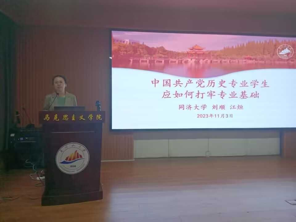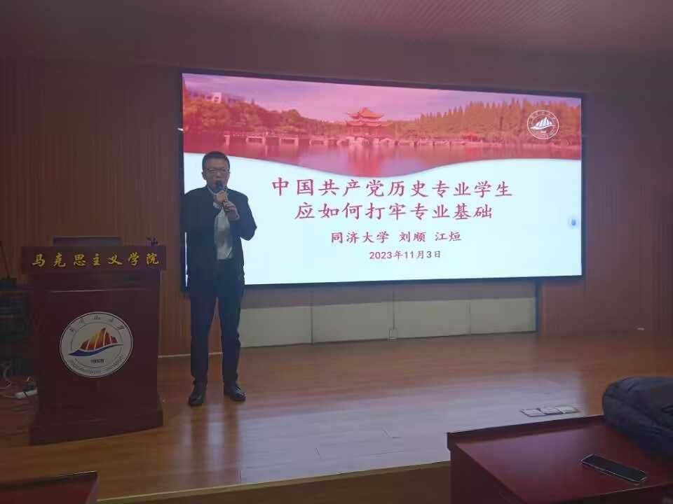 同济大学马克思主义学院副院长刘顺教授、助理江烜在1栋103以《中国共产党历史专业学生应如何打牢专业基础》为题开展讲座,讲座由毛丹副院长主持。刘顺从初心角度入手,积极引导学生坚守初心,确定专业范畴,保持学习热情。江烜从确定中国共产党历史专业主题框架、中国共产党历史研究通用方法、选择合适的对象和切入点、区分中国共产党党史专业与相关专业差异、学会找寻当代中国共产党党史材料五个方面娓娓道来,为同学们学习提供了有效的学习方法和思路。