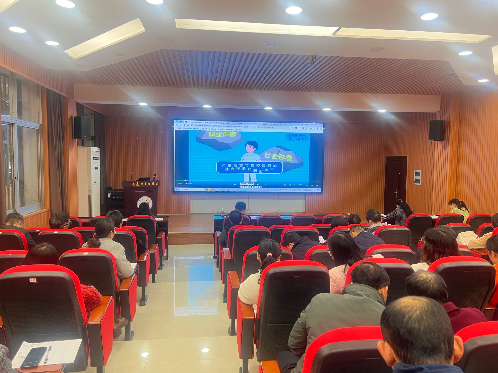 3月21日,为学习贯彻落实党的二十大精神,巩固深化主题教育成果,常态化推进纪律教育,进一步加强师德师风建设,营造崇尚清廉校风,树立优良师风,马克思主义学院开展了师德师风建设警示教育活动,学院领导及全体教师参加了此次活动。