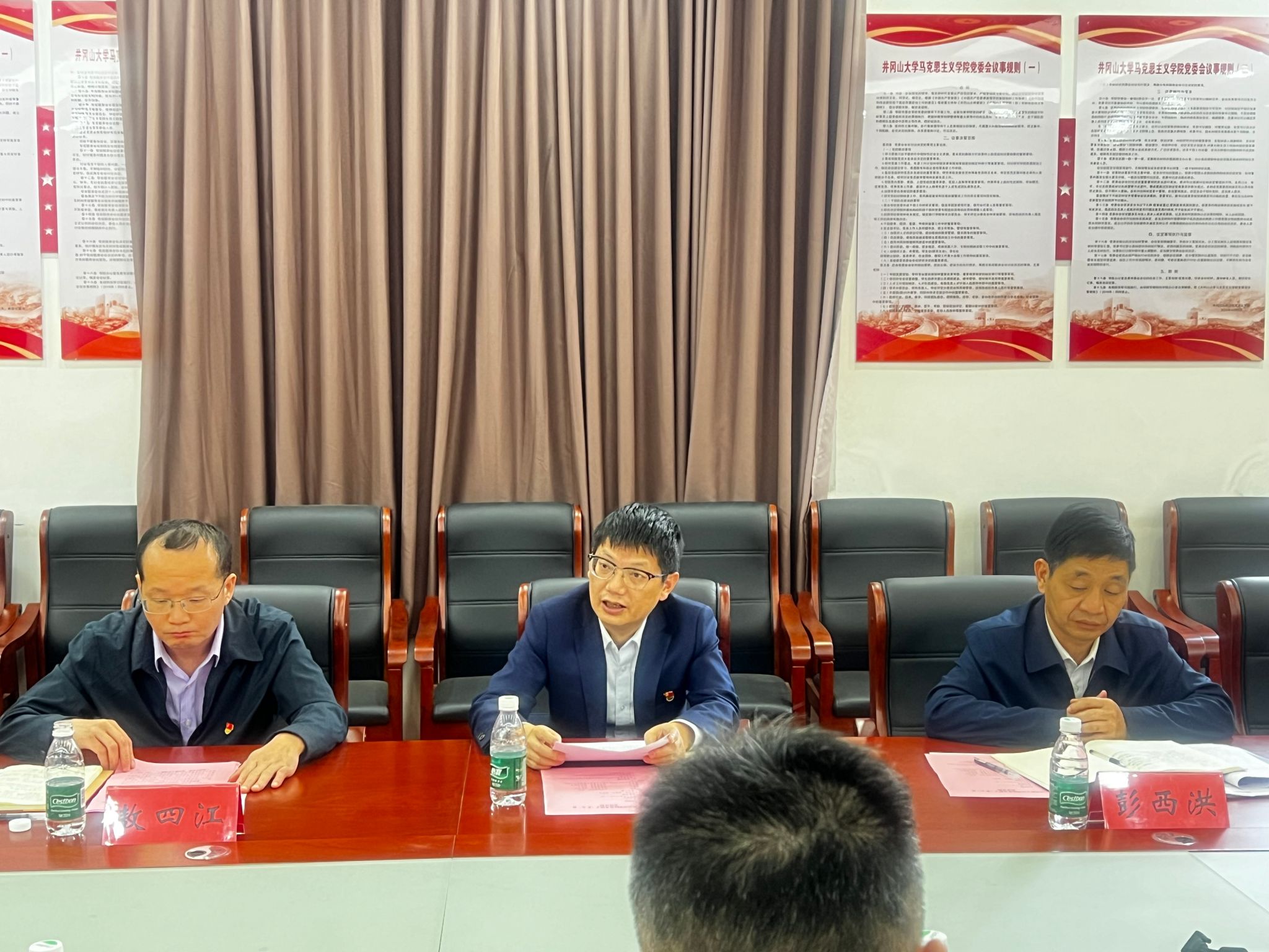 会议由校党委常委、副校长敖四江主持,会上,校党委副书记、校长罗旭彪讲话,强调指出学校党委高度重视和支持马克思主义学院走内涵式发展之路,发挥立德树人主阵地作用和思政课铸魂育人的主渠道作用,马院地位和作用日益凸显。他还提出了“五个第一”的明确要求:坚持政治建院,建强马克思主义学院“第一学院”;坚持铸魂育人,把讲授思想政治理论课作为“第一主课”;坚持内涵发展,做优马克思主义理论“第一学科”;坚持高质量发展,打赢筹备博士点申报攻坚战的“第一战役”;坚持人才兴院,引领思政课教师队伍成为“第一队伍”。
