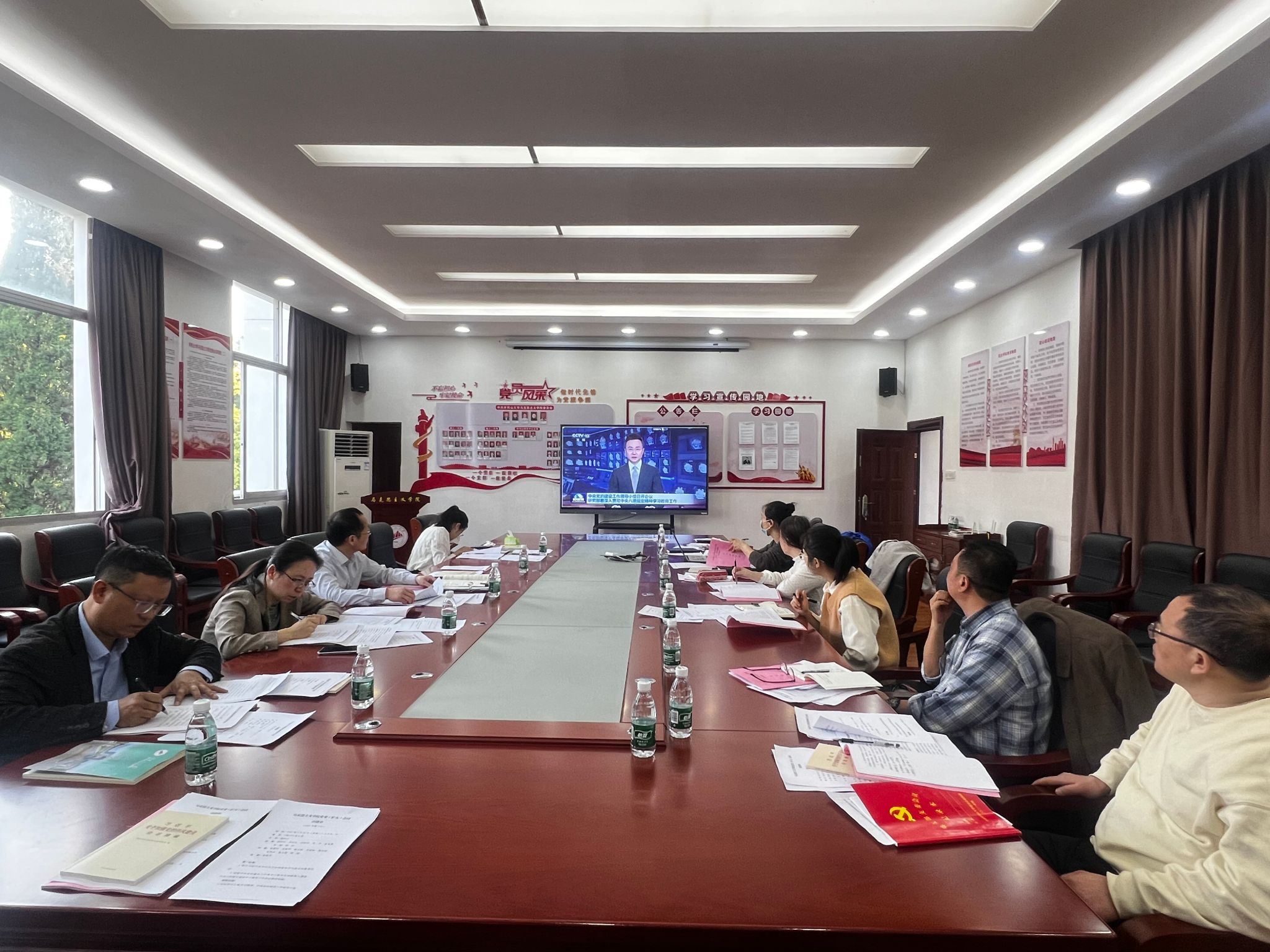 会议传达学习了习近平总书记关于加强党的作风建设的重要论述,观看了中央党的建设工作领导小组研究部署深入贯彻中央八项规定精神学习教育工作会议新闻视频,传达学习了中央党的建设工作领导小组会议精神、省委常委会会议精神、省级层面学习教育专班第一次会议暨业务培训会精神、省委教育工委学习教育业务培训会精神、学校党委常委会(扩大)会议部署深入贯彻中央八项规定精神学习教育工作会议精神,审议通过了马克思主义学院党委《关于开展深入贯彻中央八项规定精神学习教育的工作安排》。