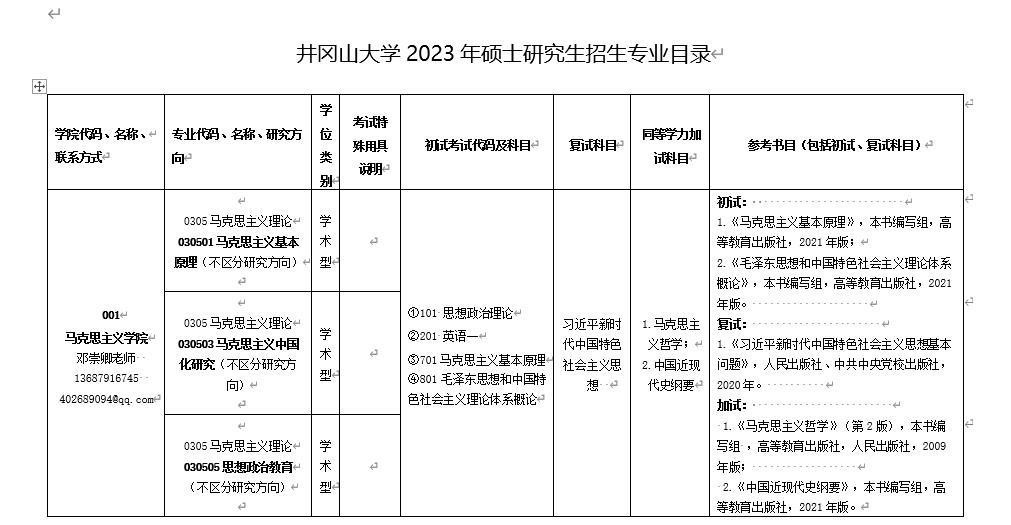 附件:井冈山大学2023年硕士研究生招生专业目录